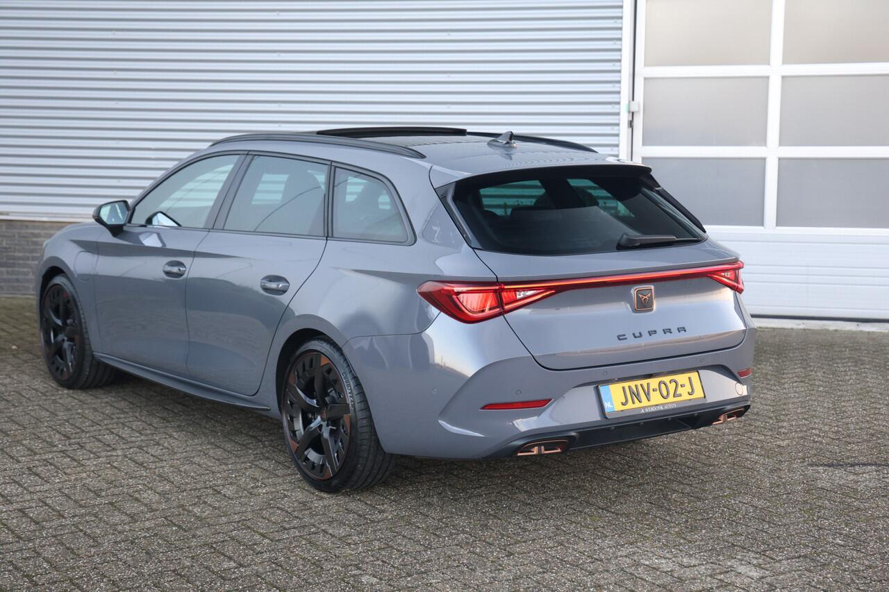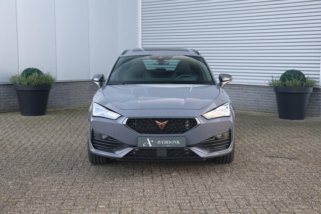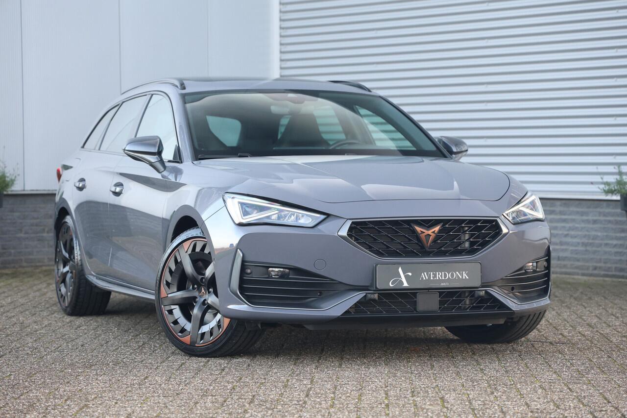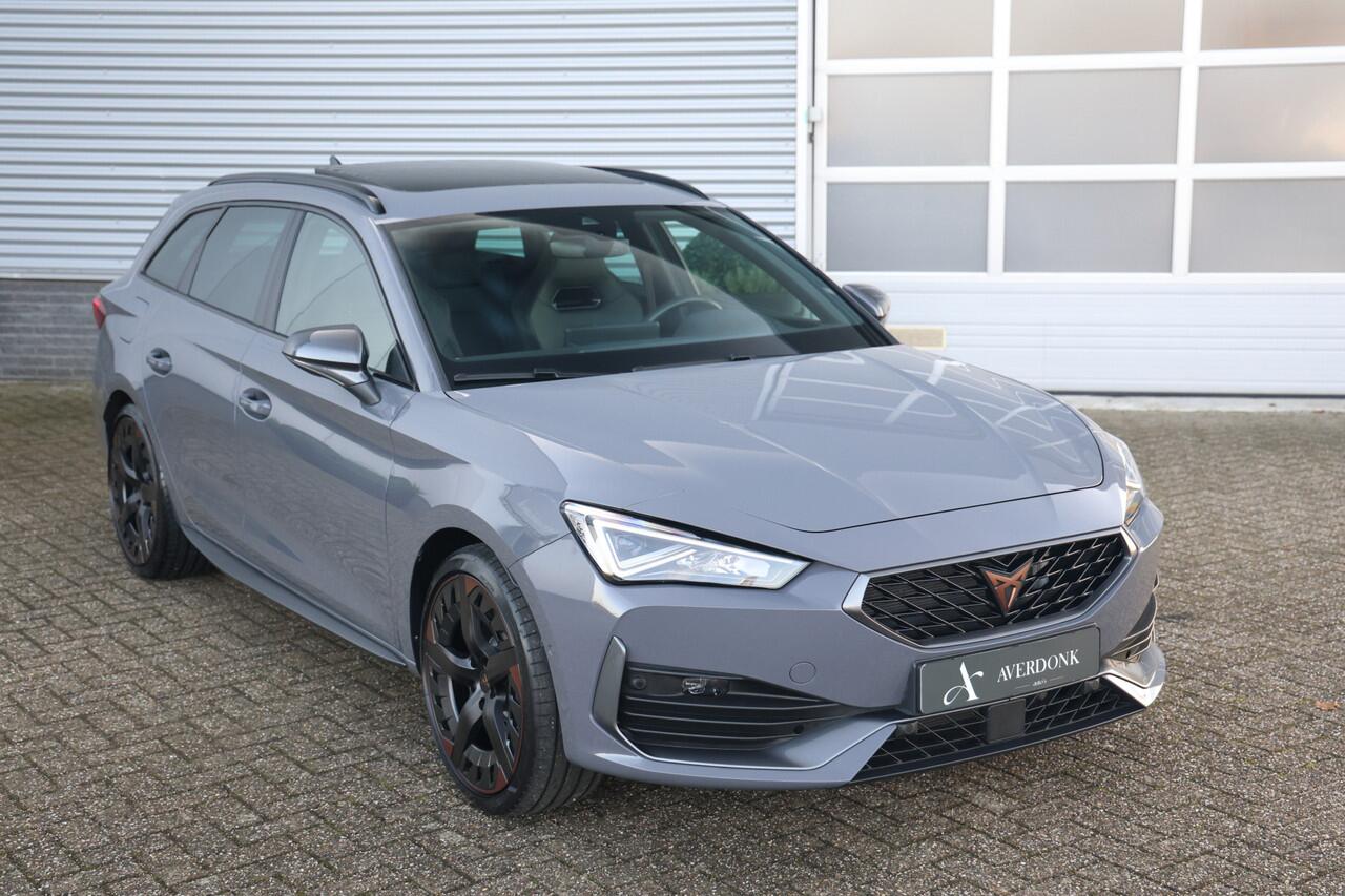 Zeer sportieve en complete Cupra Leon Sportstourer 1.4 e Hybrid VZ Copper Edition met slechts 50.425 kilometers op de teller en maar liefst 245pk gecombineerd vermogen betreft een zeer complete auto in de mooie kleur Graphene grey voorzien van de 19inch zwarte wielen met Copper accenten maakt dit een zeer unieke verschijning tevens is de auto voorzien van: groot glazen panoramadak
