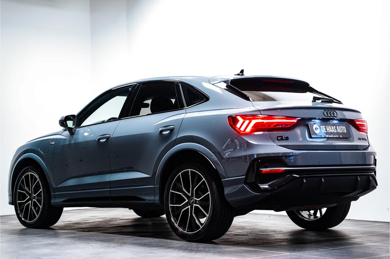Dit is gaaf! Een Q3 Sportback 45e hybrid S-Line in de SK lak Kemora Grijs! De Audi is afkomstig van de officiële merkdealer en heeft o.a. zwart optiek