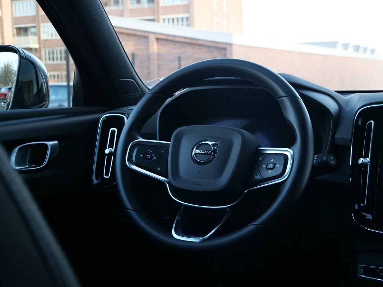 efficiënte rit. Parkeer en kijk niet om! De achteruitrijcamera doet dat voor u. U weet altijd hoe de auto eraan toe is dankzij Connected Services. Ook handig voor de garage en de wegenwacht. Even de app uitlezen en klaar! In deze XC40 vindt u niet alleen schakelaars op het stuur om het full map navigatiesysteem te bedienen en het audio-installatiesysteem met DAB-ontvangst