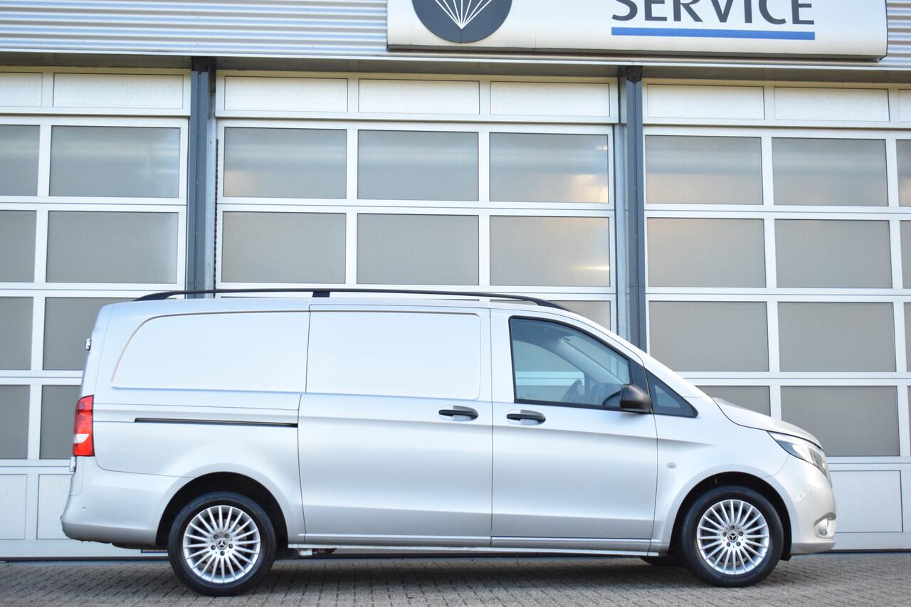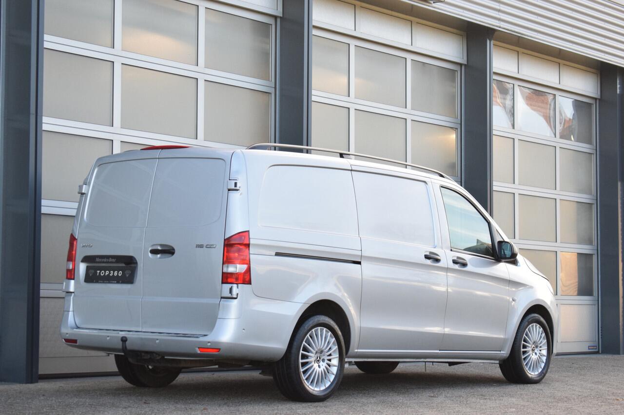 Mooie zilverkleurige Mercedes Vito 119cdi lengte 2 automaat met een trekhaak en de bumpers in de kleur.