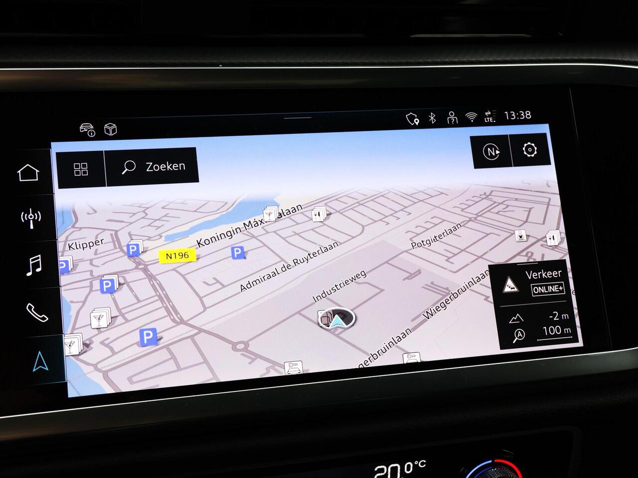 De Audi Q3 Sportback is ook voorzien van ADAS. Deze Advanced Driver Assistence Systems fungeren als extra ogen en oren: ze houden voor u de weg in de gaten en grijpen in wanneer dat nodig is. Een belangrijke bijdrage aan de veiligheid onderweg levert de verkeersbord-detectie. Het Lane-keeping systeem zorgt dat u mooi binnen de lijntjes blijft. Ongemerkt buiten de rijstrook komen is er niet meer bij. Op een kop-staartbotsing zit niemand te wachten. Daarom is de forward collision warning onderweg constant alert en berekent via een sensor de veilige afstand tot voorliggers. U bent mede dankzij dodehoekdetectie