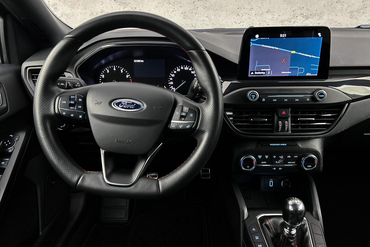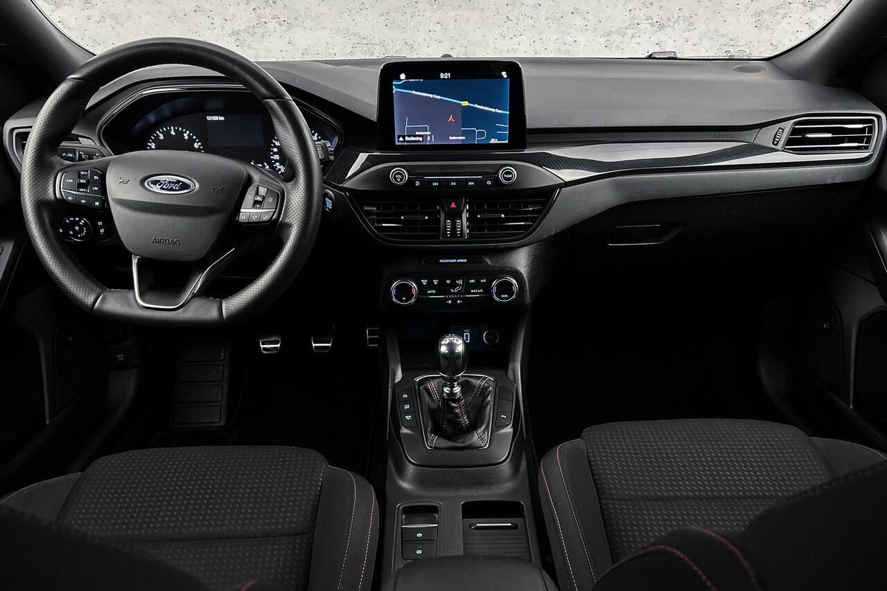 ook op afstand. Tijdens de rit bedient u het audio-installatiesysteem en het full map navigatiesysteem met de knoppen op het stuur of met uw stem. Moet uw smartphone ook even tanken? Bijladen kan supersimpel met de draadloze telefoonlader. Aan boord van deze Ford Focus Wagon is een achteropkomend verkeer waarschuwing voor extra veiligheid. Hoeveel ruimte u nog heeft bij het insteken? De parkeersensoren laten het weten! Da's gemakkelijk! Natuurlijk behoren WIFI-hotspot