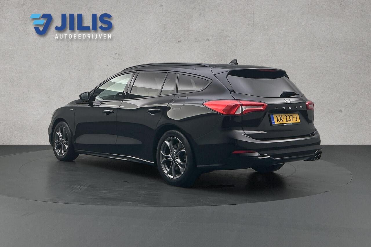 Zoals u mag verwachten van deze Ford Focus Wagon is hij uitgerust met een reeks aan actieve veiligheidssystemen. Het Lane-keeping systeem let constant op en waarschuwt of corrigeert als u onoplettend over de lijnen van de rijstrook gaat. Het forward collision warning-systeem berekent via een sensor de afstand tot het verkeer vóór u en komt in actie als er gevaar bestaat van een botsing. In deze Ford vinden we verder een hill hold functie