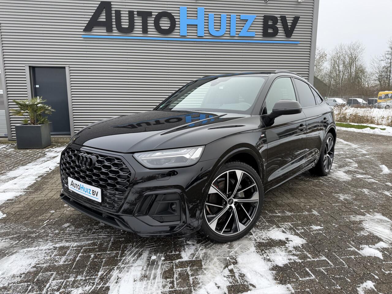 een bom volle en dealeronderhouden Audi Q5 Sportback 40 TFSI 204 PK S-Line in de kleur Mythosschwarz Metallic.