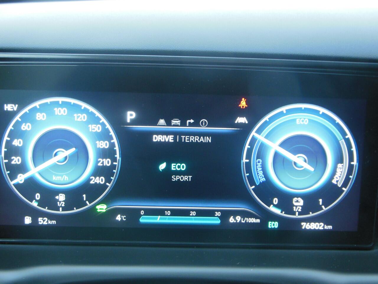 want de verkeersbord-detectie leest de borden langs de weg en projecteert ze voor u op het instrumentarium. Het Lane-keeping systeem zorgt dat u mooi binnen de lijntjes blijft. Ongemerkt buiten de rijstrook komen is er niet meer bij. Voertuigen of personen buiten uw zicht kunnen gevaar opleveren. De actieve dodehoekdetectie waarschuwt direct. In deze Hyundai vinden we verder een forward collision warning system