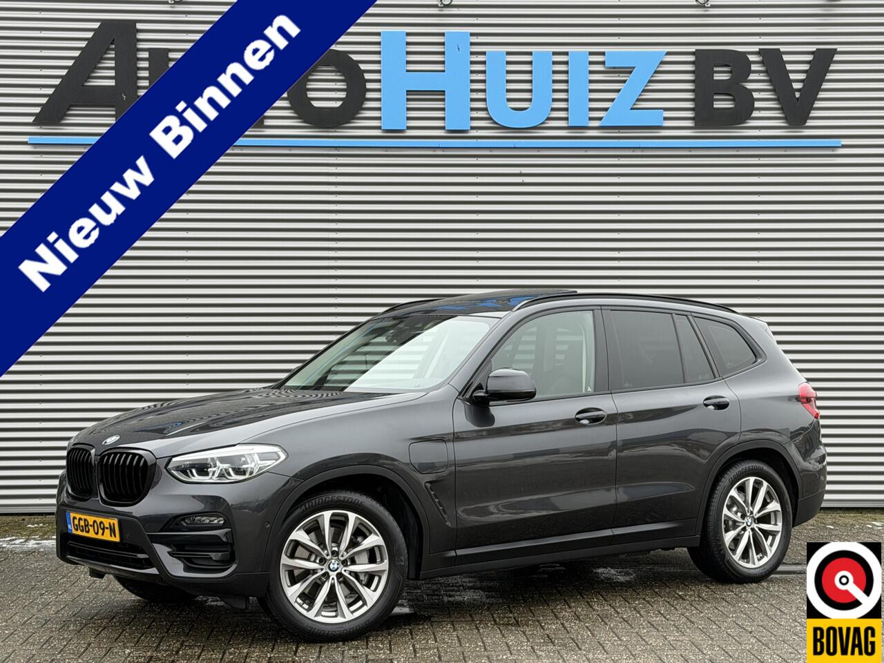 een zeer rijk uitgeruste en top onderhouden BMW X3 xDrive30e High Executive in de kleur Sophisto Grau Metallic met een zwart lederen interieur.