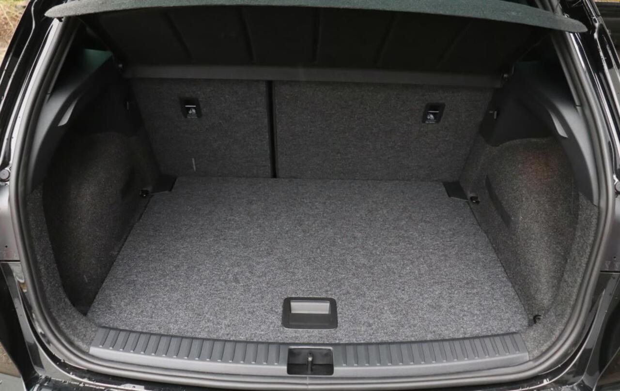 donker getint glas achter en in delen neerklapbare achterbank.