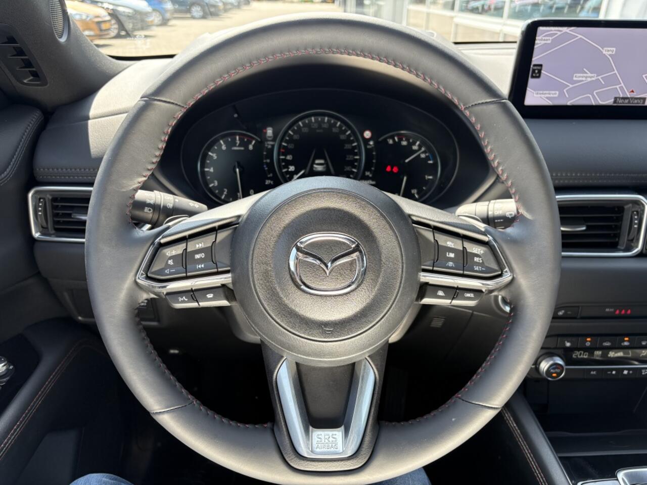 wat de levensduur ten goede komt in combinatie met een gunstig brandstofverbruik. Deze cx-5 is de Homura. Dat is de sportief getinte versie en is ten opzichte van de standaard versie o.a. uitgerust met zwarte 19-inch lichtmetalen velgen
