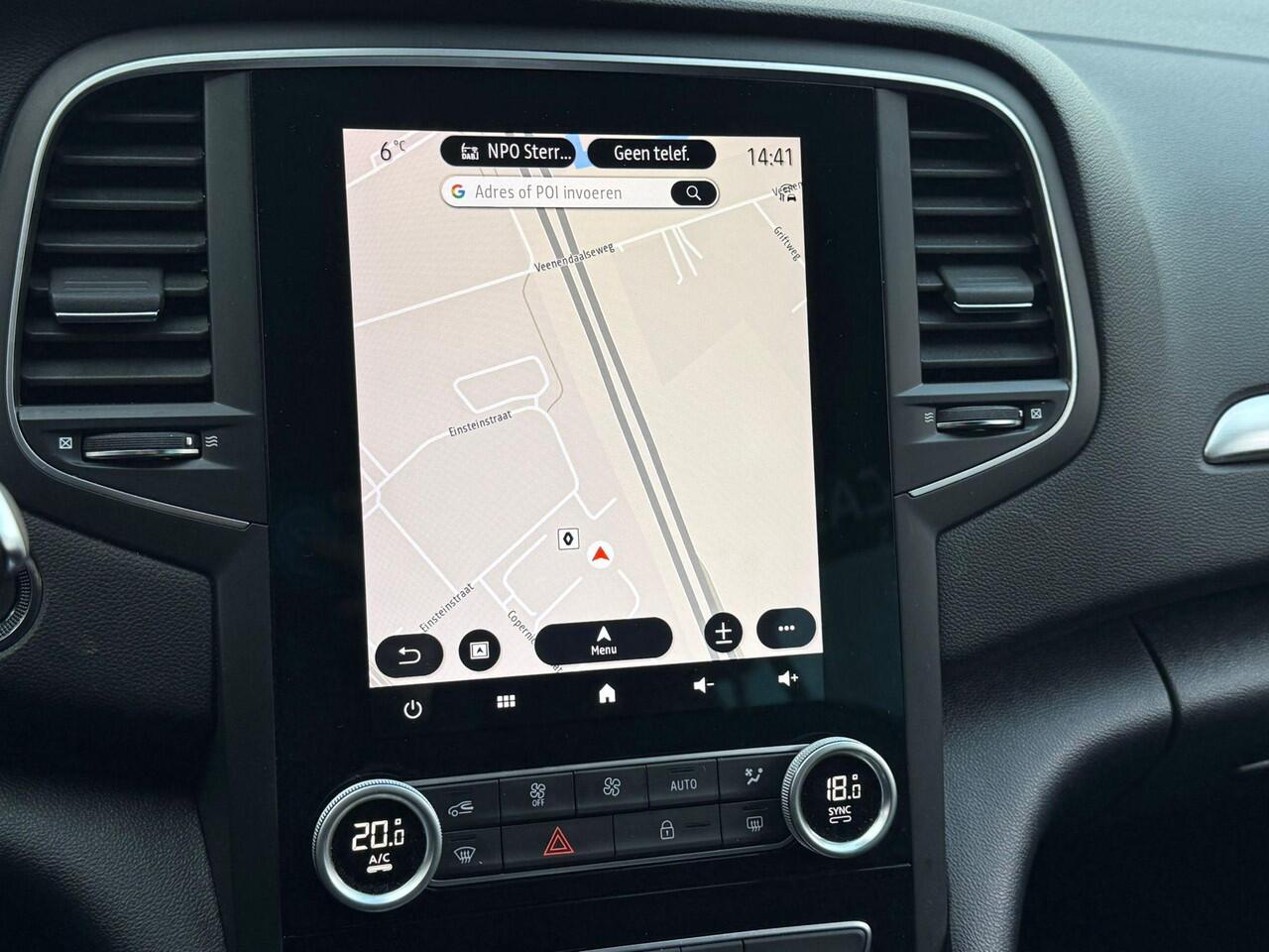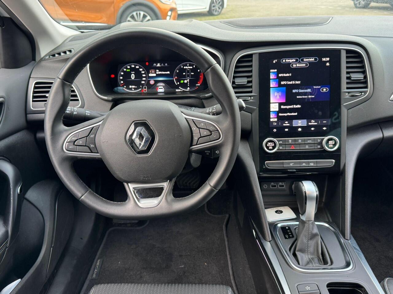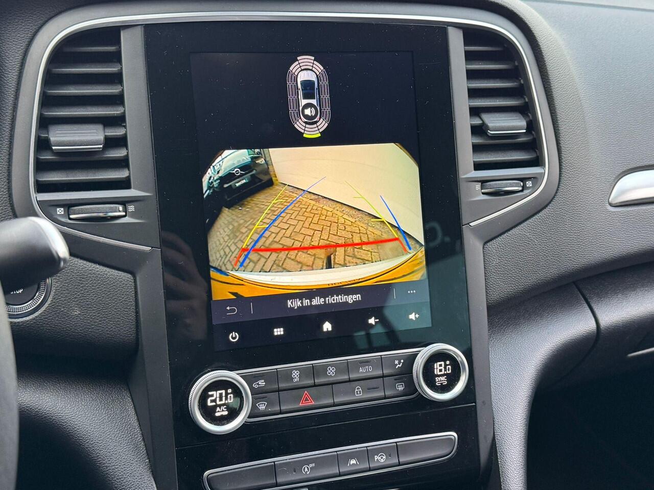 zo'n achteruitrijcamera. Een goede veiligheidsvoorziening is de stuurbediening voor belangrijke functies. De auto is natuurlijk voorzien van een navigatiesysteem en het audio-installatiesysteem biedt glasheldere geluidskwaliteit dankzij DAB-ontvangst. Ook is de auto voorzien van automatische airconditioning. Natuurlijk is een complete auto als deze ook voorzien van sensoren die de omgeving in de gaten houden. Deze Renault heeft niet alleen een automatisch inschakelbare verlichting aan boord