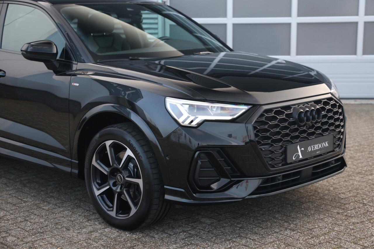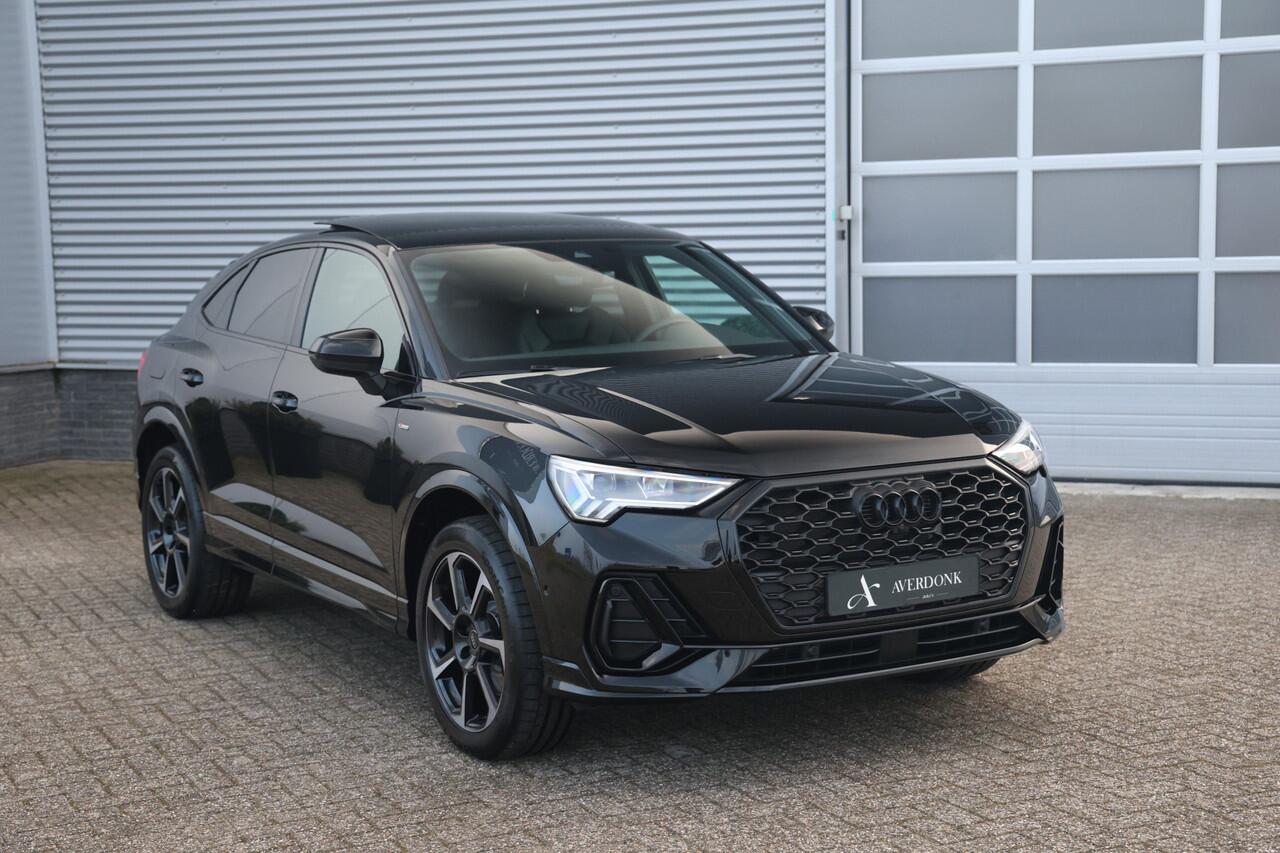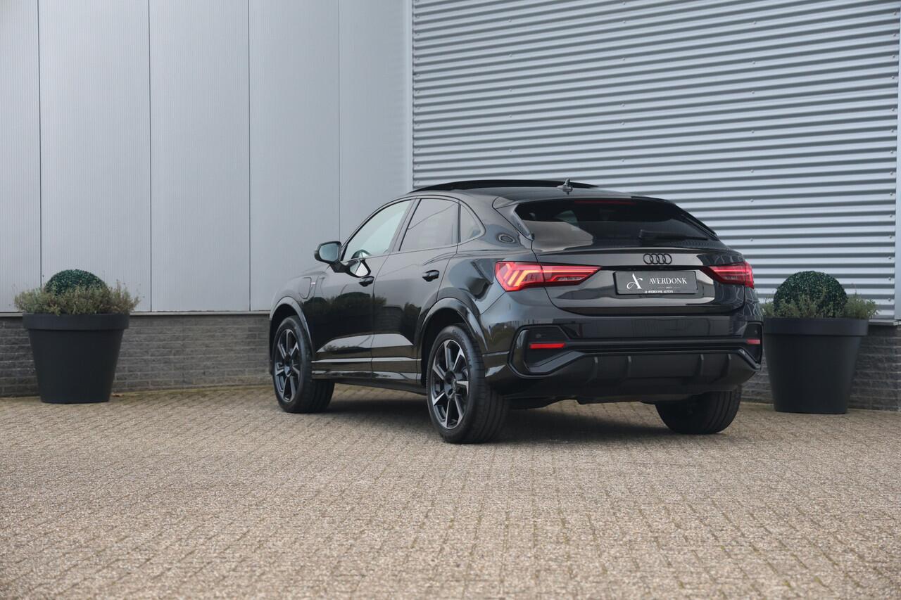 Unieke en zeer complete Audi Q3 Sportback 45TFSI e S-Line Black Edition plug in hybride met een gecontroleerde kilomerstand van slechts 20.112 kilometer in Mythos zwart metallic en voorzien van vele opties waaronder: