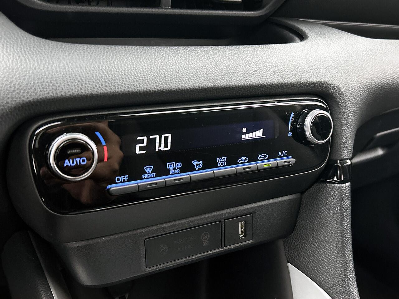 zoals remote services. Met een speciale app maak je overal verbinding met de auto. Zo kan je functies activeren en controleren. Onderweg kun jij veilig genieten van het audiosysteem met dab-radio. Want in deze Toyota bedien je het vanaf het stuurwiel. De uitrusting van deze auto is met automatische airconditioning