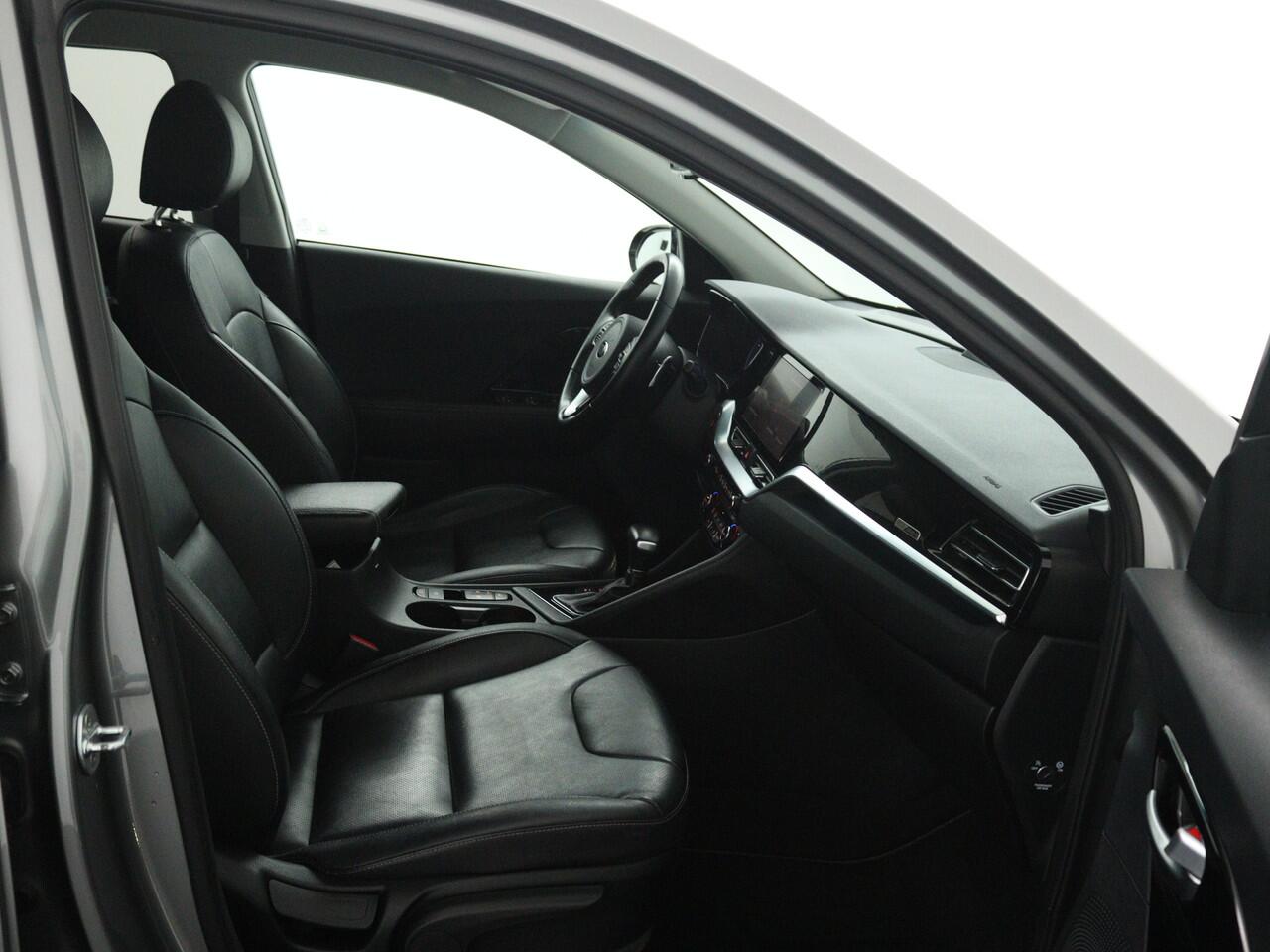 moeten we zeker het lederen interieur noemen. 's Winters op pad gaan kan een behoorlijke uitdaging zijn. Daarom is deze Kia Niro voorzien van weldadige verwarmbare voorstoelen. Bij de uitrusting van deze auto horen onder meer 16 inch lichtmetalen velgen