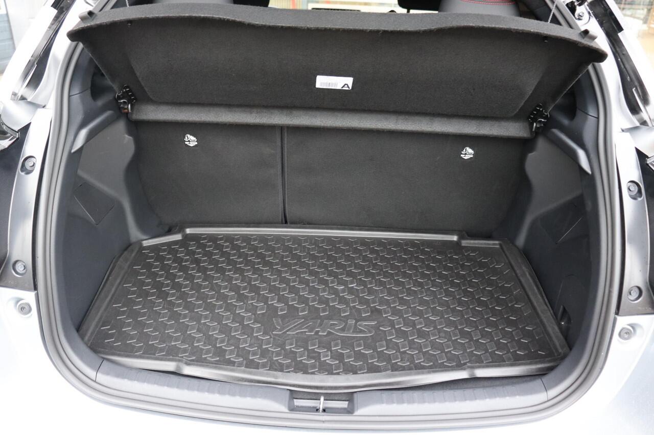 Deze gave Toyota Yaris 1.5 Hybrid 115 GR Sport is in de kleur "Shimmering Silver" met een zak dak. Naast dat deze Yaris met mooie GR afwerkingen in het interieur en exterieur heeft