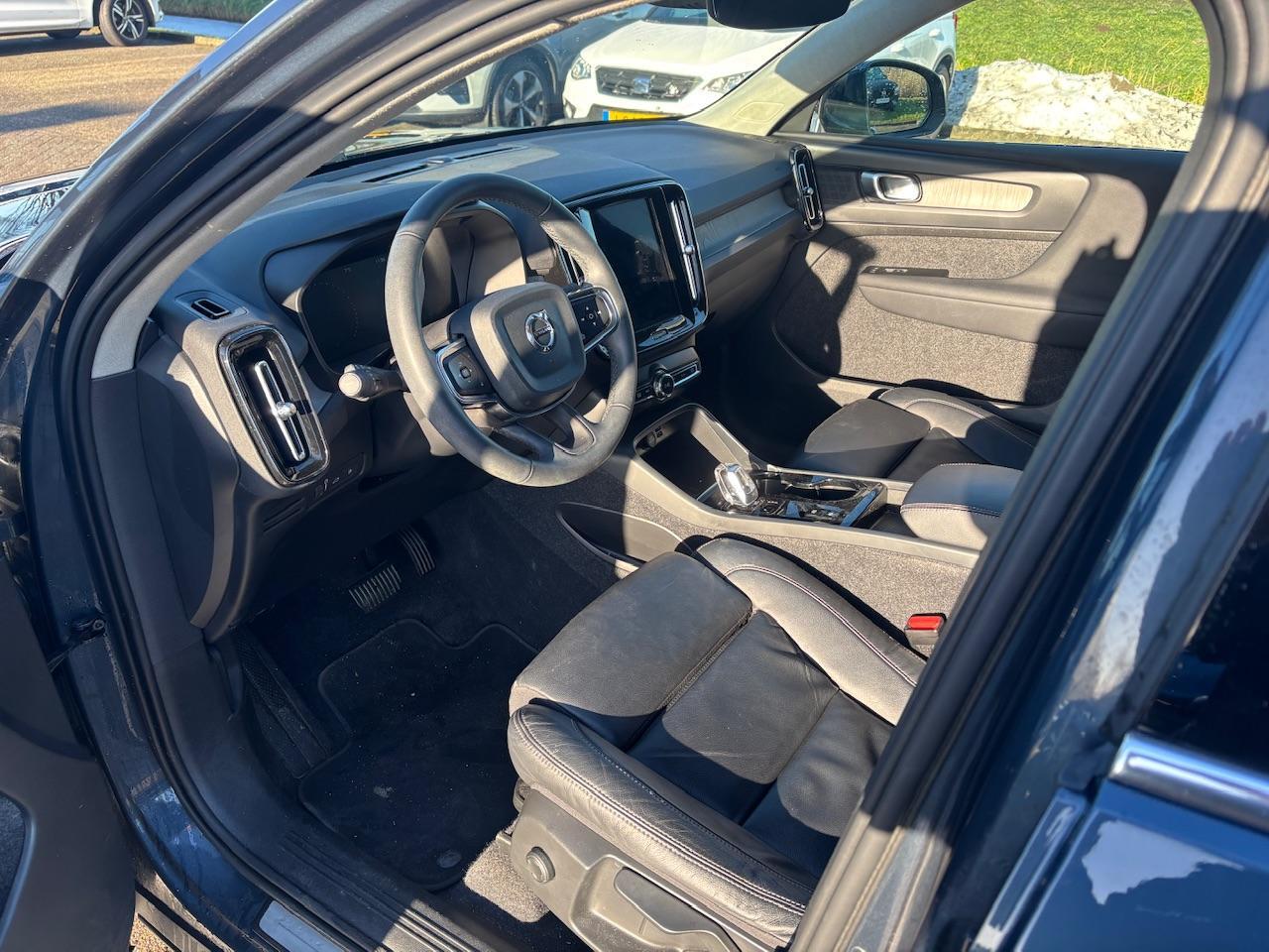 Super mooie Volvo XC40 T4 in de kleur 'Denim Blue'. Dit exemplaar van de XC40 heeft een elektrisch rijbereik van tot wel 45 kilometer en een gecombineerd vermogen van 211 PK. Deze Volvo is uitgerust met een trekhaak