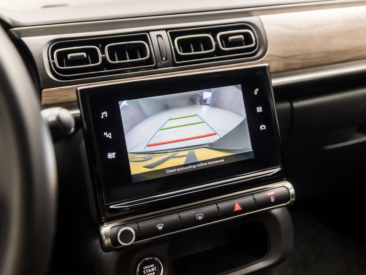 contact houden is een eitje. De bediening van het audio-installatiesysteem en het navigatiesysteem gebeurt met knoppen op het stuur en als u wilt zelfs met uw stem. De audio is overigens voorzien van DAB-radio voor een altijd heldere ontvangst. Aan boord van deze Citroën C3 is een achteropkomend verkeer waarschuwing voor extra veiligheid. Het spreekt voor zich dat een auto als deze ook van automatische airconditioning is voorzien. Natuurlijk behoren regensensor