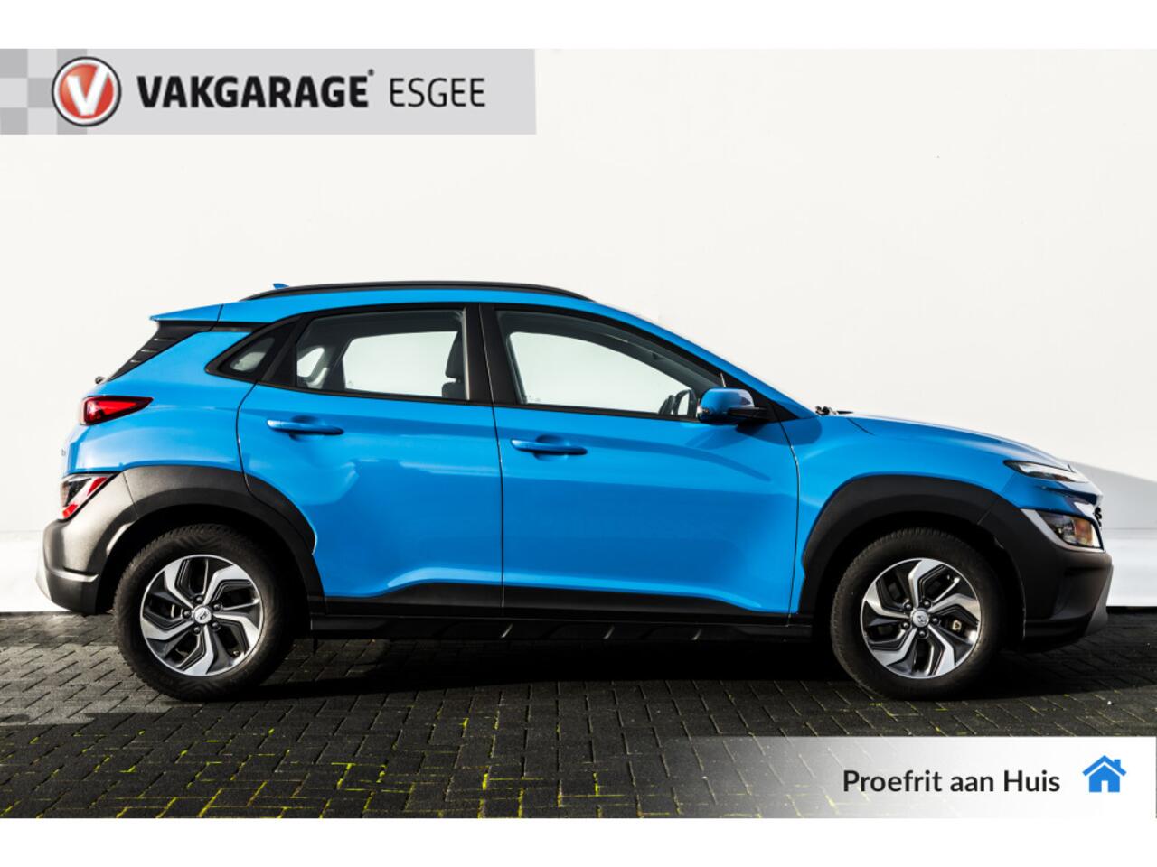 adaptieve cruise control en een complete uitrusting dan is deze Hyundai Kona 1.6 GDI HEV Fashion in de stijlvolle kleur Surfy Blue metallic een bijzonder aantrekkelijke keuze binnen het actuele aanbod tweedehands en hybride occasions van Esgee.
