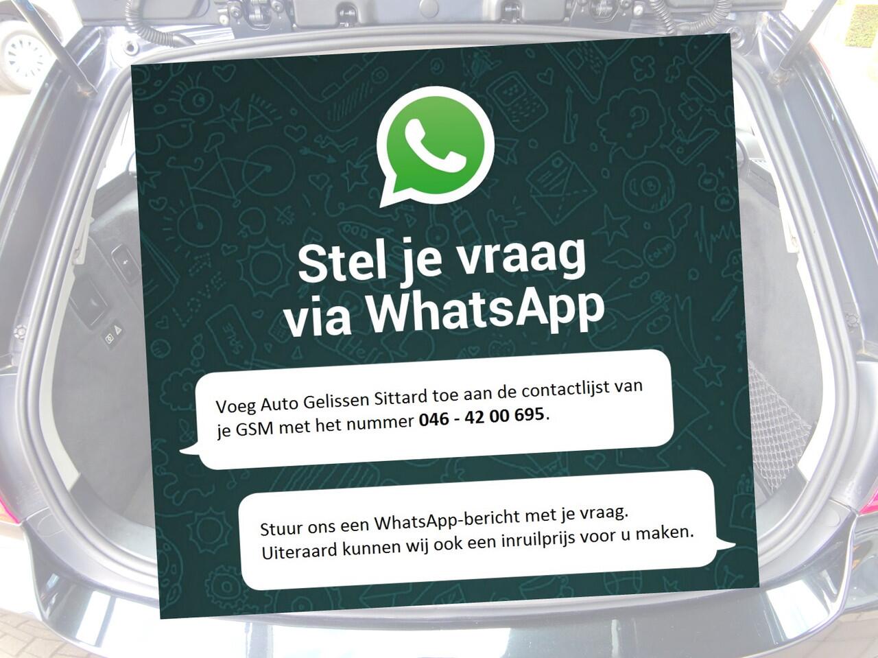 Specifieke vragen over deze auto of benieuwd wat uw eigen auto waard is? Neem vrijblijvend contact met ons op via telefoonnummer 046-4200695 (ook WhatsApp) of stuur een e-mail naar verkoop@autogelissen.nl. Zelfs buiten de reguliere openingstijden mag u van ons snel een passende reactie verwachten!