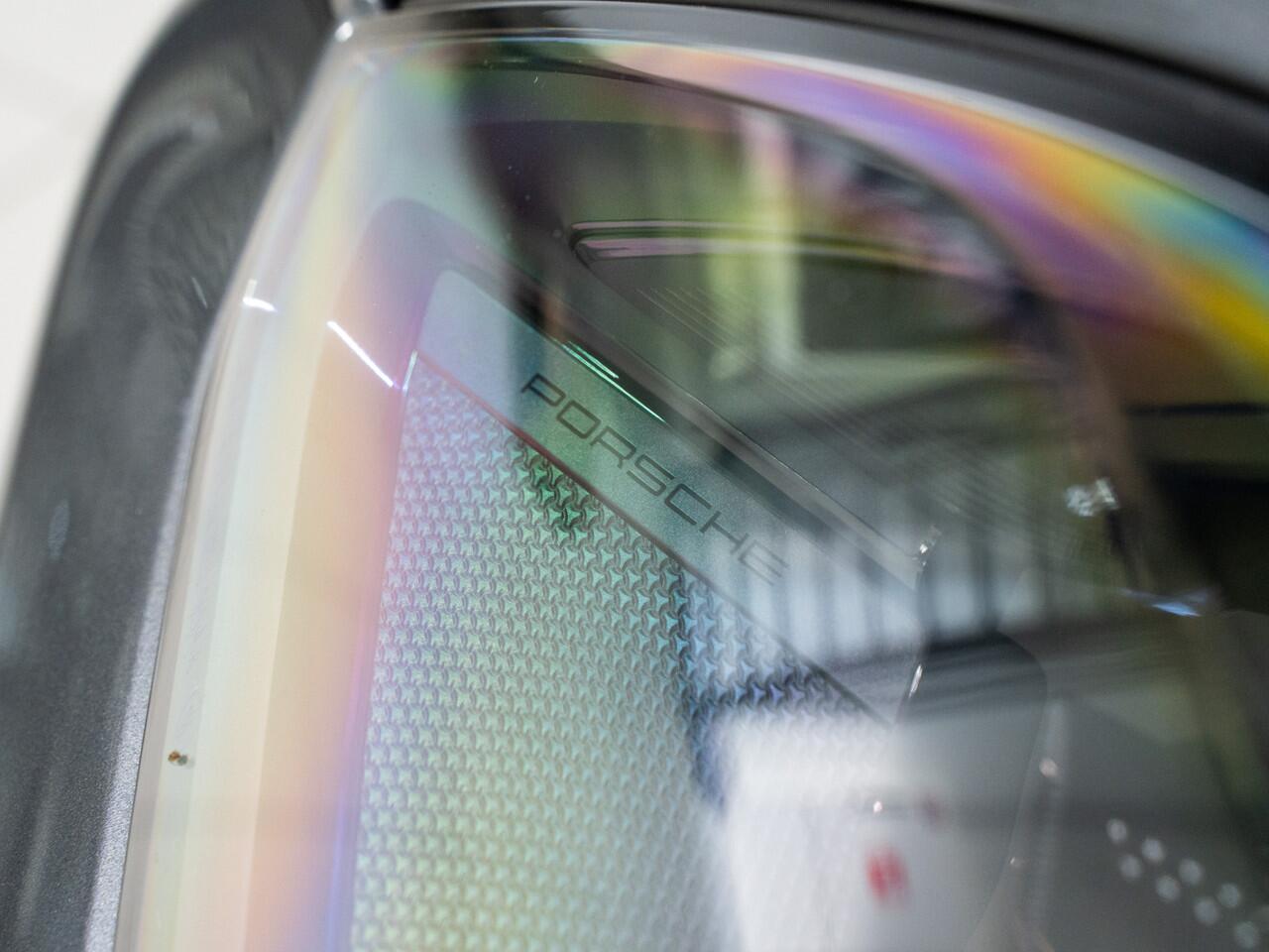 'PORSCHE' logo gespoten in hoogglans zwart en modelaanduiding gespoten in hoogglans zwart