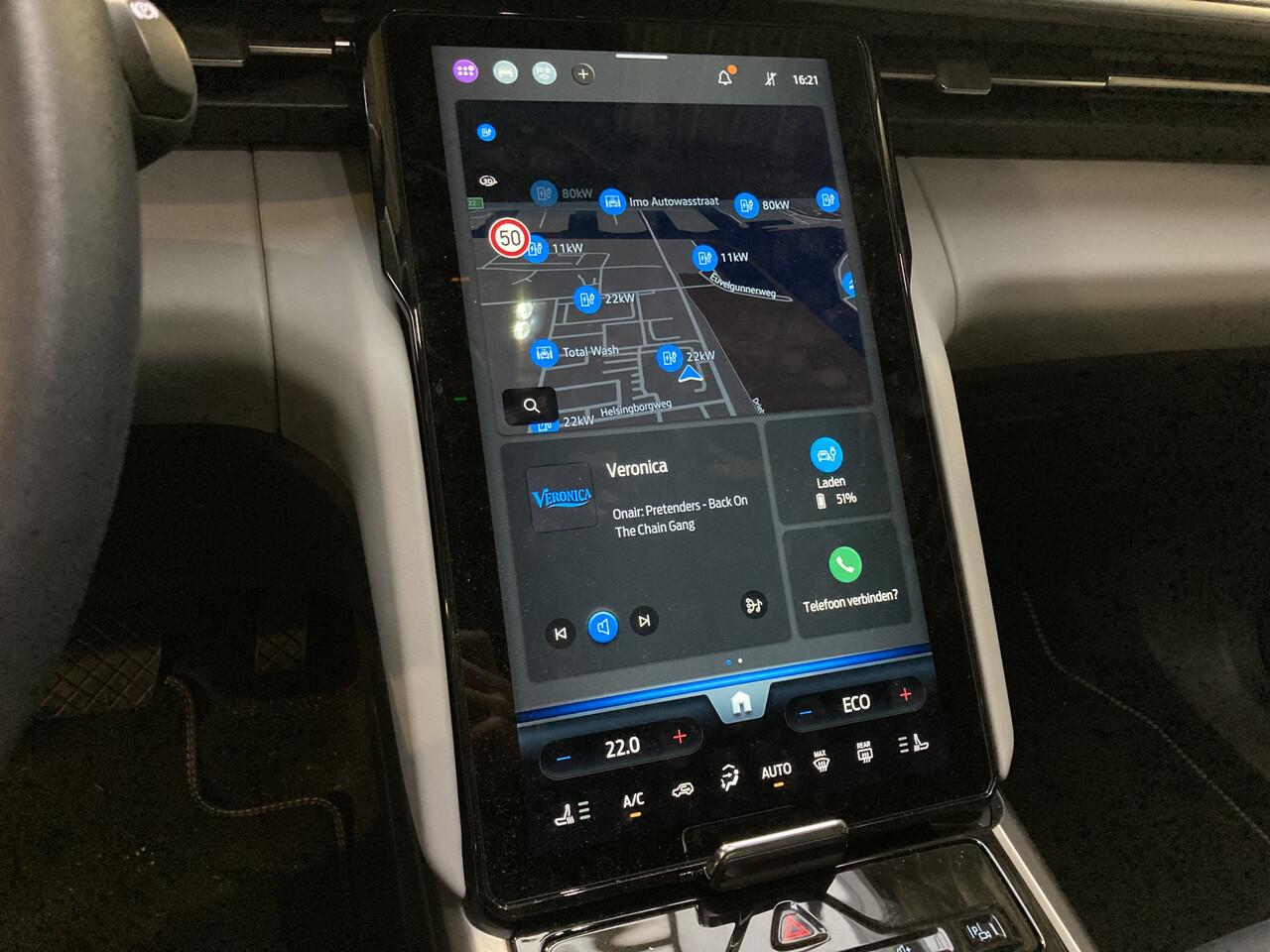 onder handbereik ziet u het grote touchscreen. Naast navigatie en bluetooth is het ook mogelijk om via Apple Carplay of Android Auto uw telefoon te koppelen. U kunt dan apps als Google Maps of Spotify op het grote scherm bedienen. Zo hoeft u nooit meer de navigatiekaart te updaten en staat u nooit meer onnodig lang in de file door zeer nauwkeurige verkeersinformatie. Het koppelen gaat draadloos zodat u de telefoon niet meer uit uw broekzak of jaszak hoeft te halen. Uw telefoon kunt u in het vak voor het touchscreen leggen zodat hij wordt opgeladen. Het scherm is bovendien te schuiven. In de achterste stand ligt het gelijk met het dashboard. In de voorste stand staat het scherm rechtop en steekt het boven het dashboard uit. Zo kunt u zelf bepalen wat voor u een fijne positie is. Achter het scherm is een verborgen ruimte die Ford de my private locker noemt. Een opbergruimte die in de achterste stand is afgesloten en is voorzien van 2 USB-C aansluitingen. Ook in de tunnelconsole is een groot afsluitbaar vak. Het is groot genoeg om een compacte laptop in de bewaren.