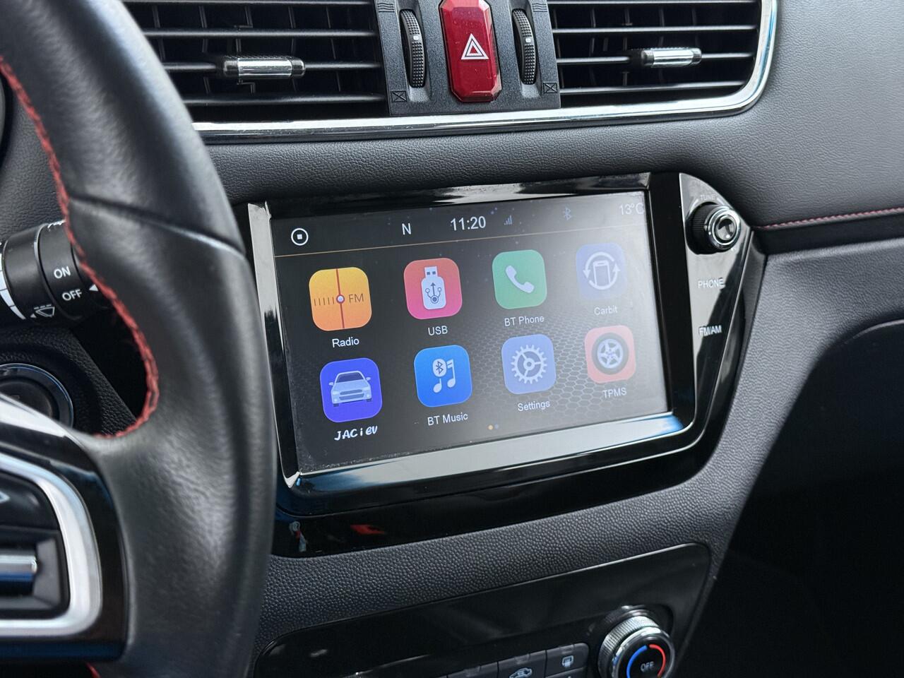 Navigatie via Apple Carplay / Android Auto Innovatieve toptechniek en een uitgesproken karakter. De jac iEV7 is een onderscheidende auto met een elektrische aandrijflijn. Nooit meer naar de pomp! De elektromotor opladen en rijden maar! Leren bekleding versterkt de topklasse uitstraling van het interieur. Voorin is het 's winters genieten met de verwarmbare voorstoelen voor zowel bestuurder als bijrijder. Verder is de jac uitgerust met: 16 inch lichtmetalen velgen