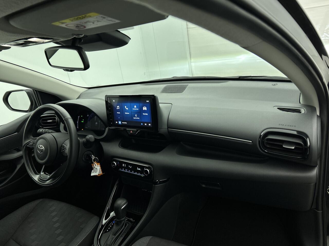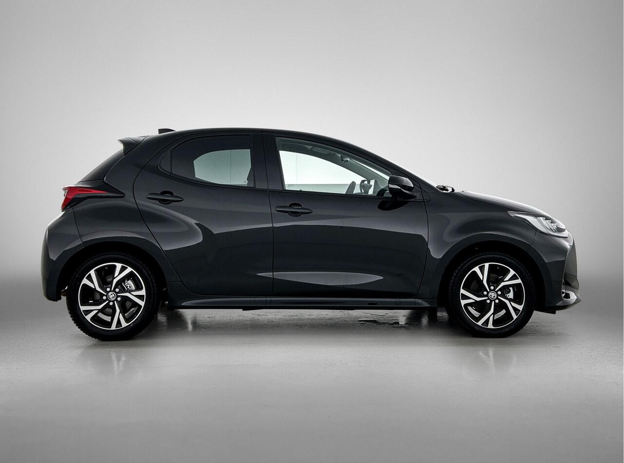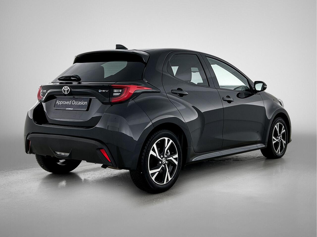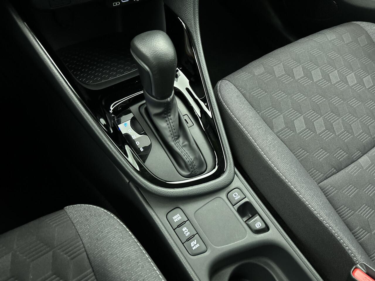 met de hybride motor van deze Toyota Yaris. De elektromotor ondersteunt of neemt het deels over van de brandstofmotor als dat uitkomt. Scheelt lekker in de kosten! Tot de uitrusting van deze Toyota behoren ook 16 inch lichtmetalen velgen