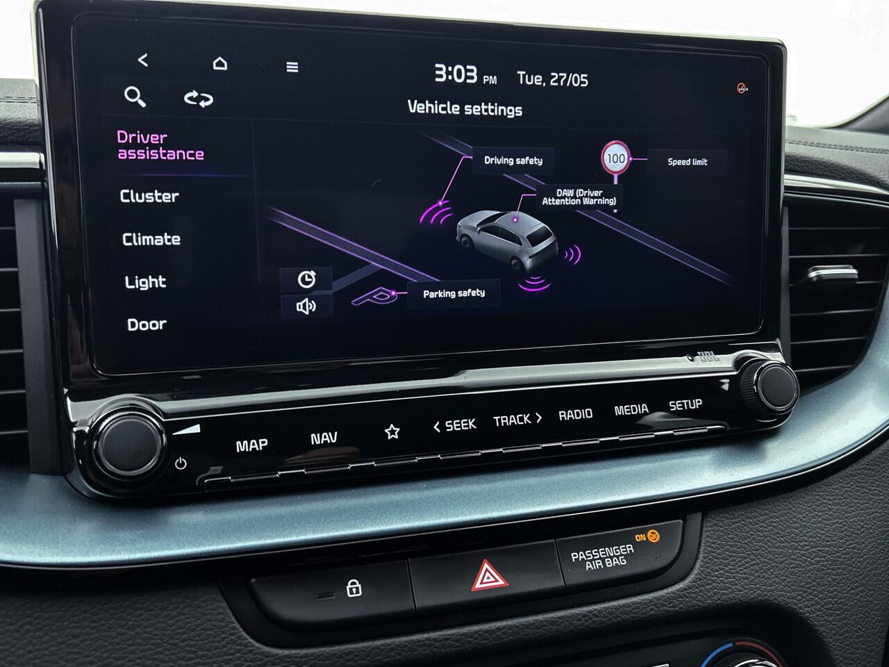 Het rijden met deze Kia wordt nog meer ontspannen dankzij de innovatieve technieken die onderweg over uw veiligheid waken. Voorzien van het Lane-keeping systeem. Ofwel: blijf automatisch in je baan. Als een ander voertuig in uw dode hoek rijdt