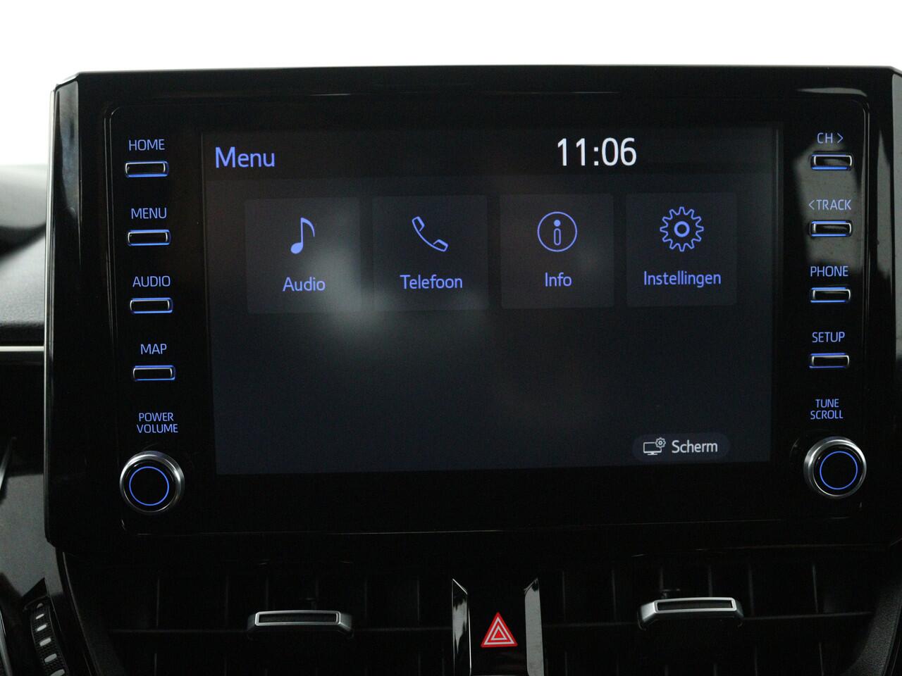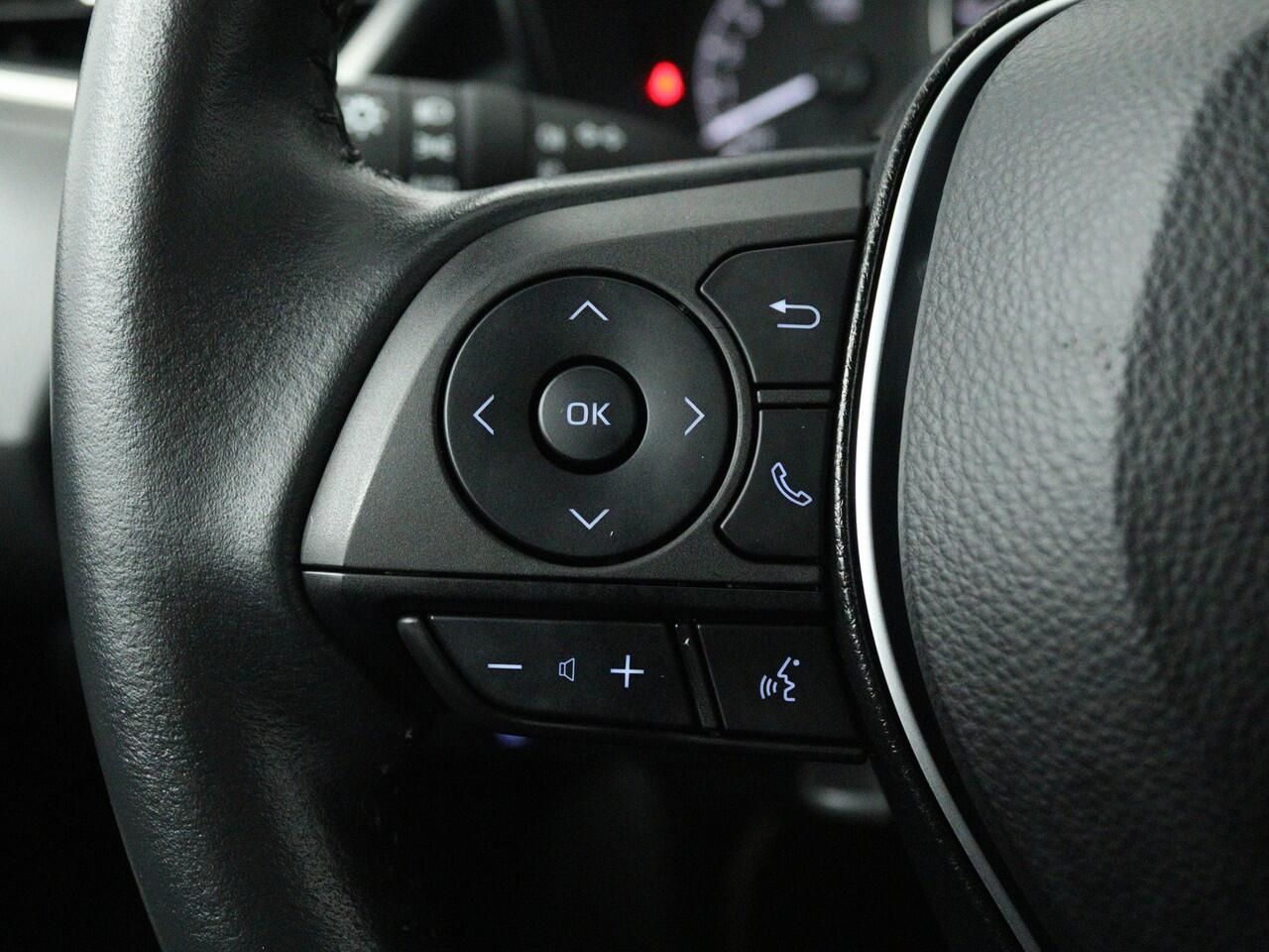 met alle functies in beeld. Dankzij Connected Services en de speciale app. Deze Toyota is voorzien van spraakbediening voor het audio-installatiesysteem met DAB-ontvangst. Maar je kunt ook de knoppen op het stuur gebruiken. De achteropkomend verkeer waarschuwing is een mooie veiligheidsoptie