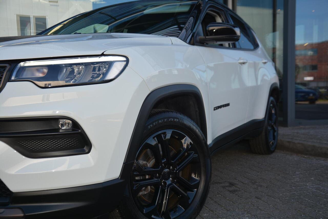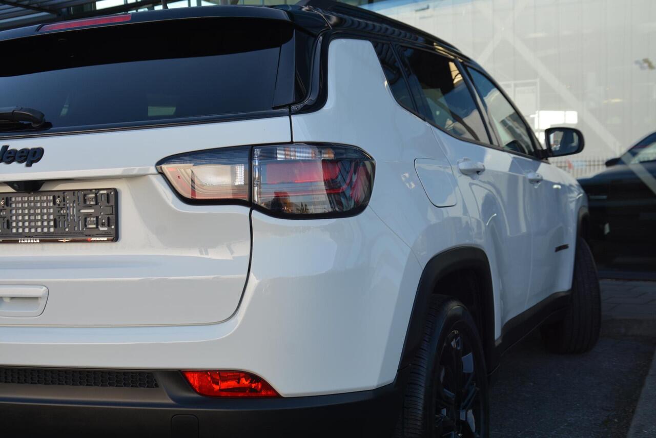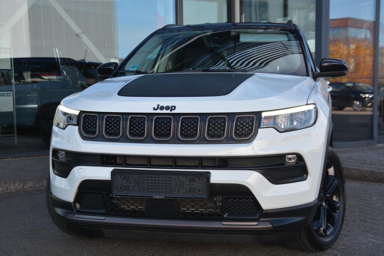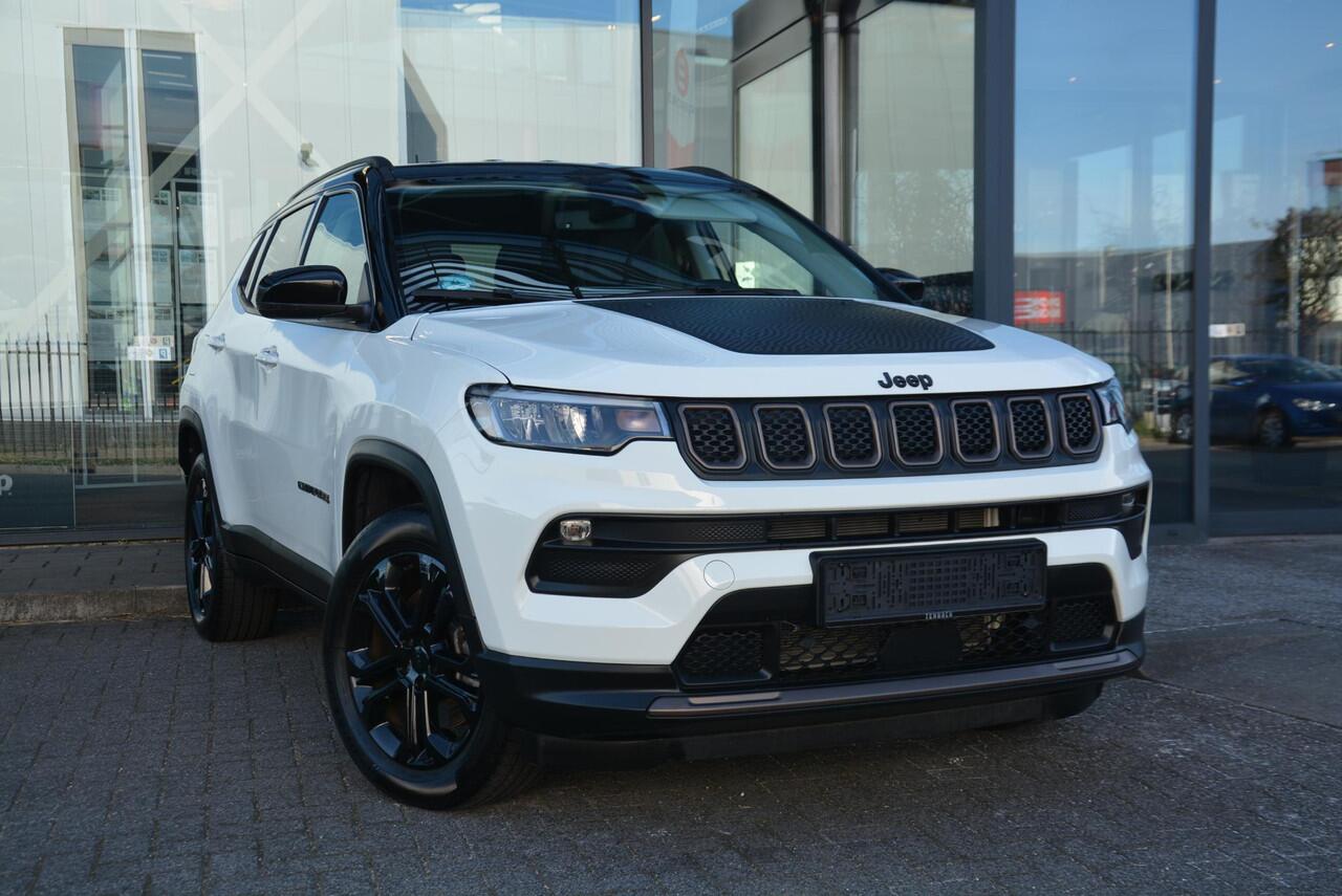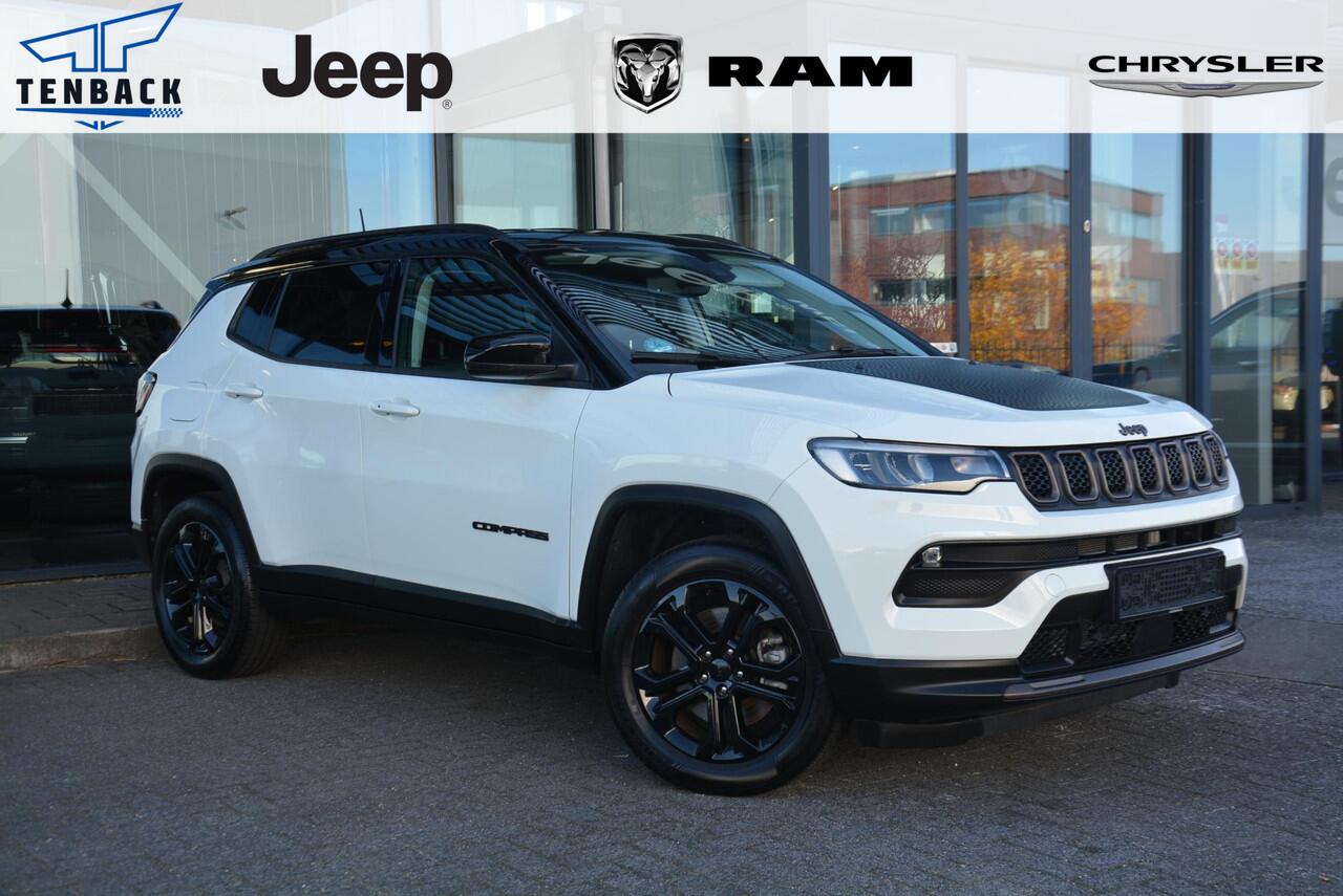 Jeep Compass in Upland uitvoering met dak in zwart contrasterende kleur. De donkerbrons gekleurde grille en zwarte 18 inch velgen maken deze Compass een zeer mooie verschijning. Onder andere uitgevoerd met;