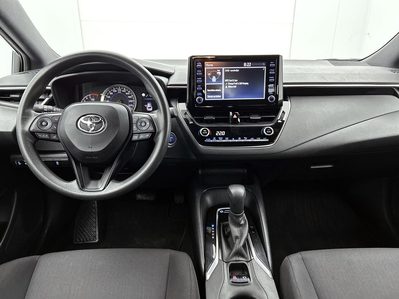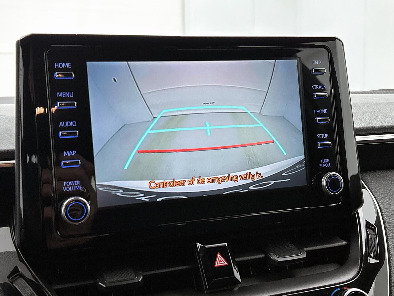 dankzij de achteruitrijcamera. Adaptive cruise control houdt de ingestelde snelheid vast en houdt automatisch afstand tot jouw voorligger. Dankzij Connected Services houd je de auto nog gemakkelijker in topconditie. Elke dag. Onderweg kun jij veilig genieten van het audiosysteem met DAB-radio. Want in deze Toyota bedien je het vanaf het stuurwiel of met gesproken opdrachten. De sensoren van de achteropkomend verkeer waarschuwing registreren wat er gebeurt in de dode hoeken en achter u. U krijgt meteen een waarschuwing als u een achterligger over het hoofd ziet. Extra opties op deze auto zijn: automatische airconditioning
