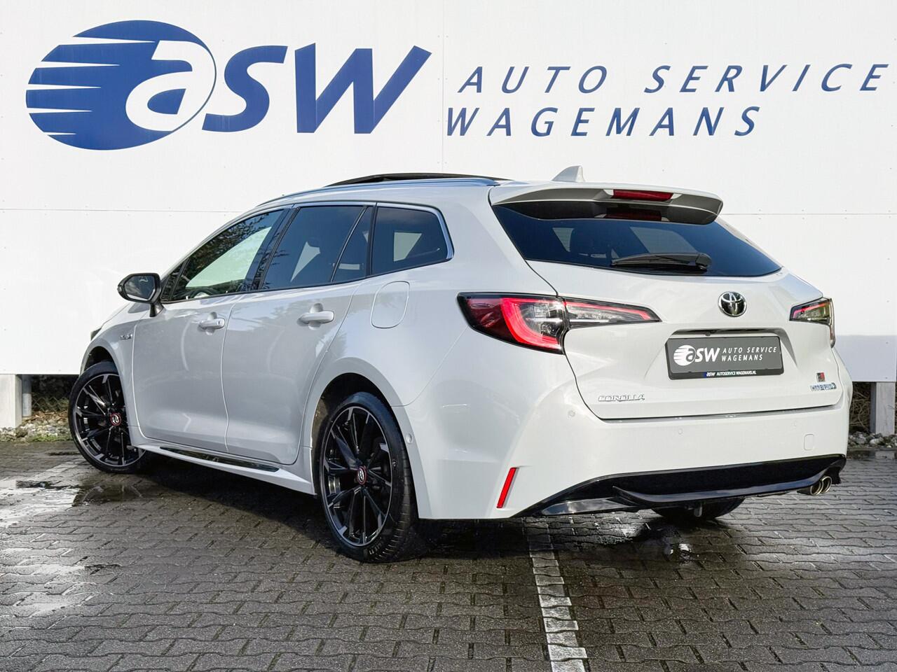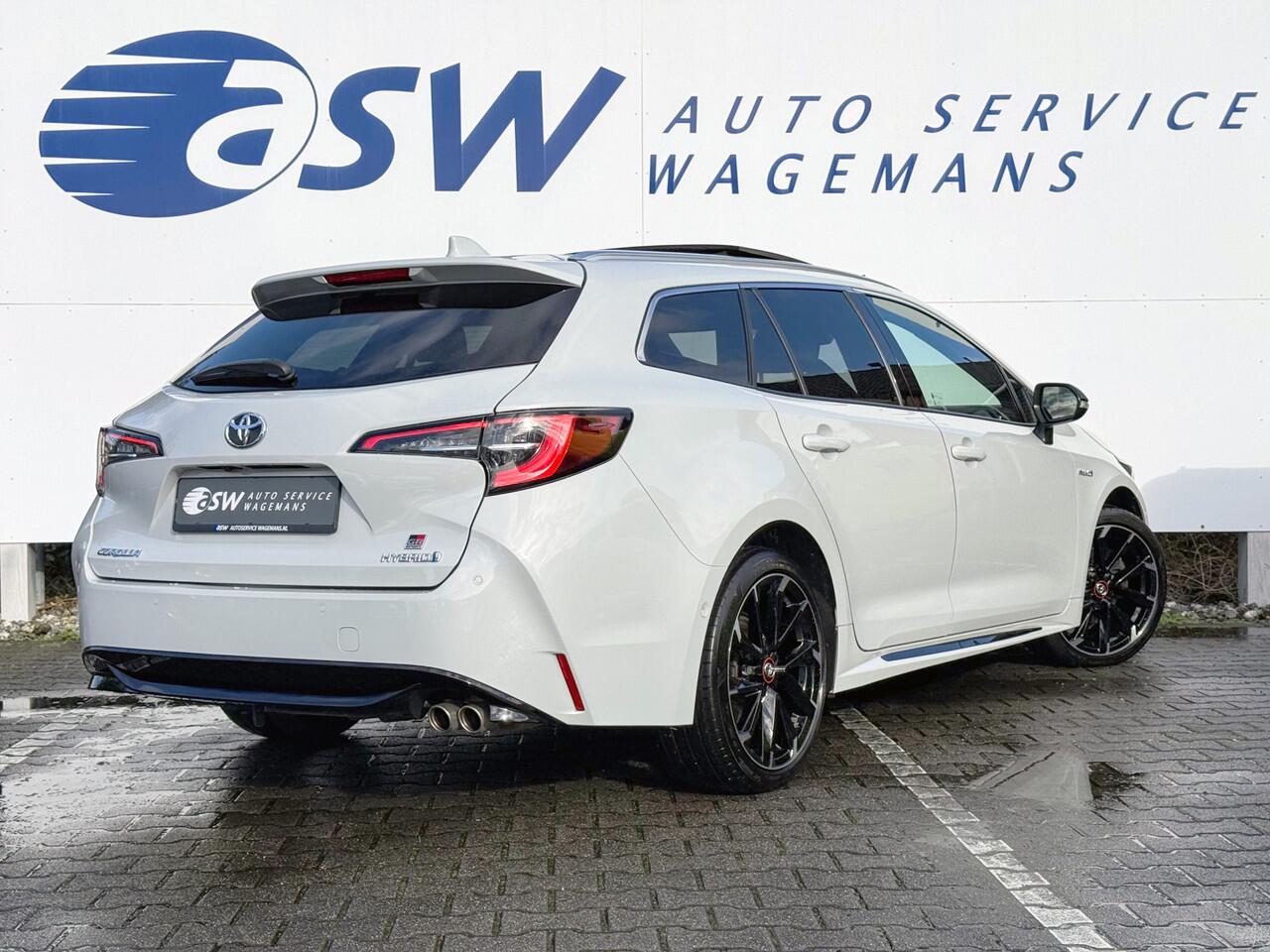 die informatie projecteert op de voorruit. Een belangrijke bijdrage aan de veiligheid onderweg levert de verkeersbord-detectie. Deze Toyota Corolla Touring Sports is ook behulpzaam als het gaat om een rechte koers. Het Lane-keeping systeem signaleert en corrigeert als u onbedoeld de rijstrooklijnen dreigt te overschrijden. Met voorzieningen als dodehoekdetector detectiesysteem