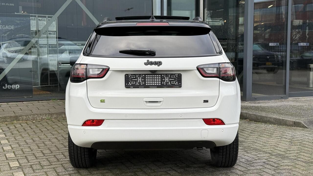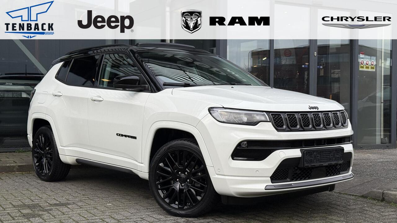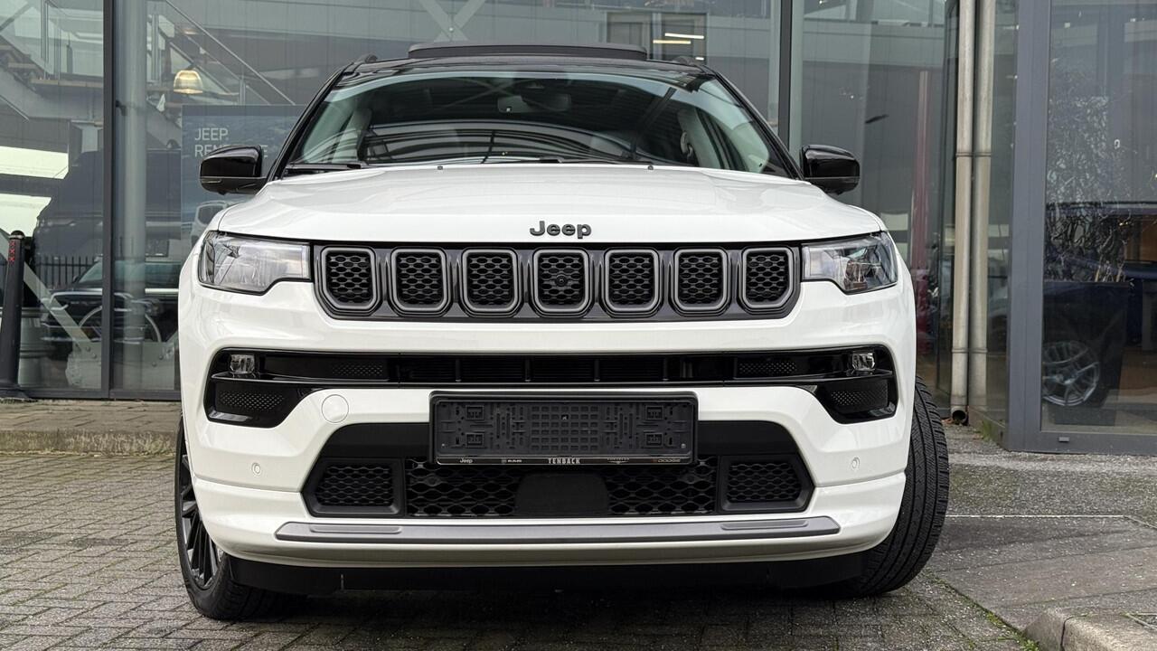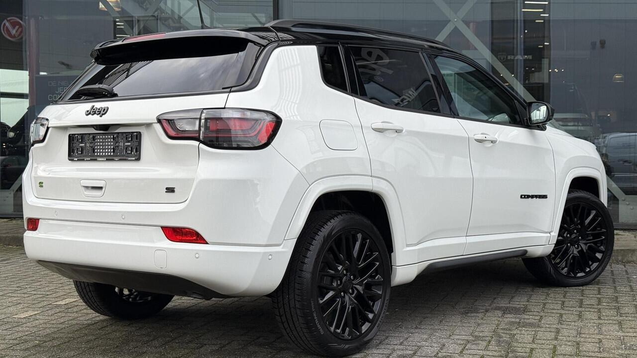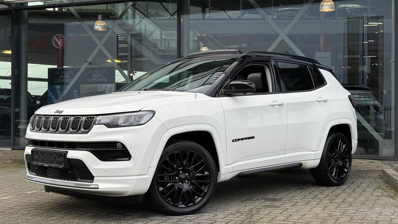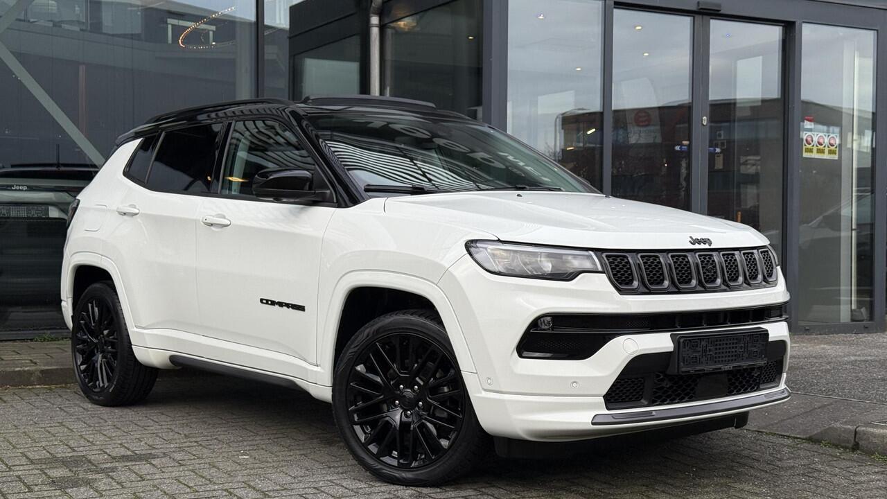 Jeep Compass in complete Summit uitvoering in Alpin White. E-hybrid technologie zonder stekker maar een zuinig verbruik. Originele nieuwprijs van 51600 euro. Onder andere uitgerust met;