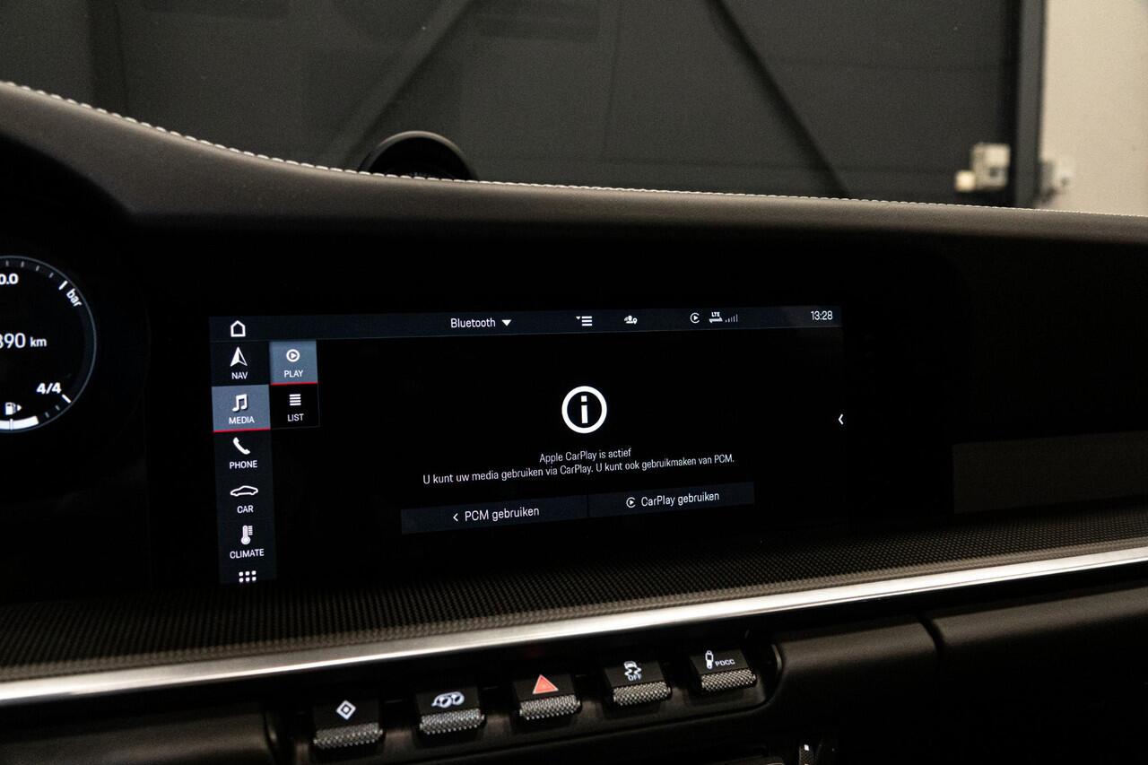 -pakket Carbon - Sierpaneel Dashboard Carbon - Middenconsole Paneel voor Carbon 1LQ - Porsche Ceramic Composite Brake (PCCB) - Remzadels Geel gespoten GH3 - Porsche Torque Vectoring Plus (PTV Plus) - Achteras-sper elektronisch geregeld 1P7 - Porsche Dynamic Chassis Control (PDCC) 9VL - BOSE® Surround Sound System 8LH - Sport Chrono-pakket incl. Launch Control 4A3 - Stoelverwarming voor 0N5 - Vierwielbesturing 1NP - Wielnaaf-afdekkingen met gekleurd Porsche-embleem 8VH - Achterlichten Exclusive Design 4KF - Privacybeglazing (verduisterd glas achter) 4F2 - Comfort-toegang (Keyless Entry) JQ3 - Dynamische Motorlagering (Porsche Active Drivetrain Mount - PADM) 8Z8 - Extra waterkoeler KA -