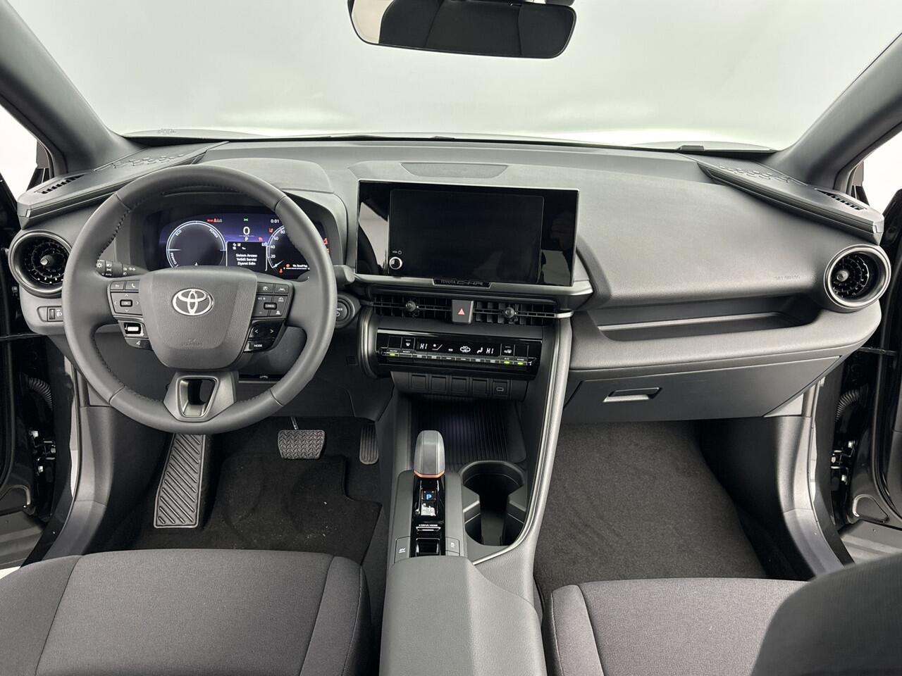 is deze Toyota C-HR voorzien van een achteropkomend verkeer waarschuwing die registreert wanneer de afstand tot je achterligger te krap is. En dan is deze auto ook nog eens voorzien van automatische airconditioning