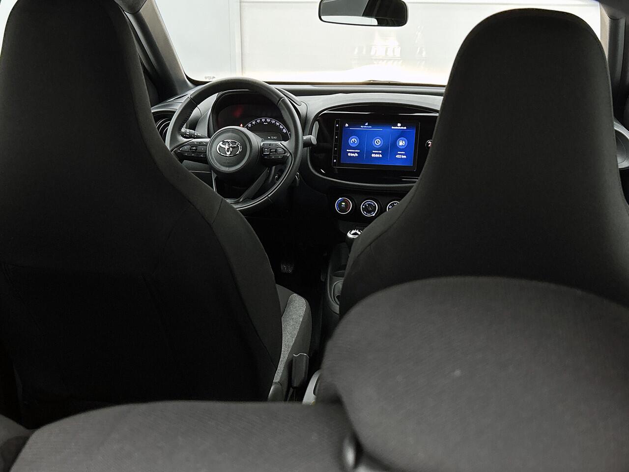 is deze Toyota Aygo X voorzien van een achteropkomend verkeer waarschuwing die registreert wanneer de afstand tot je achterligger te krap is. Het maakt niet uit hoe warm het buiten is