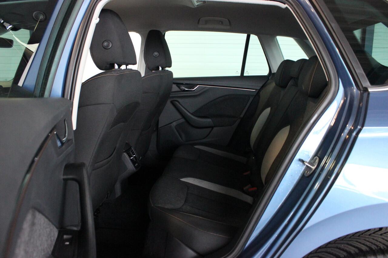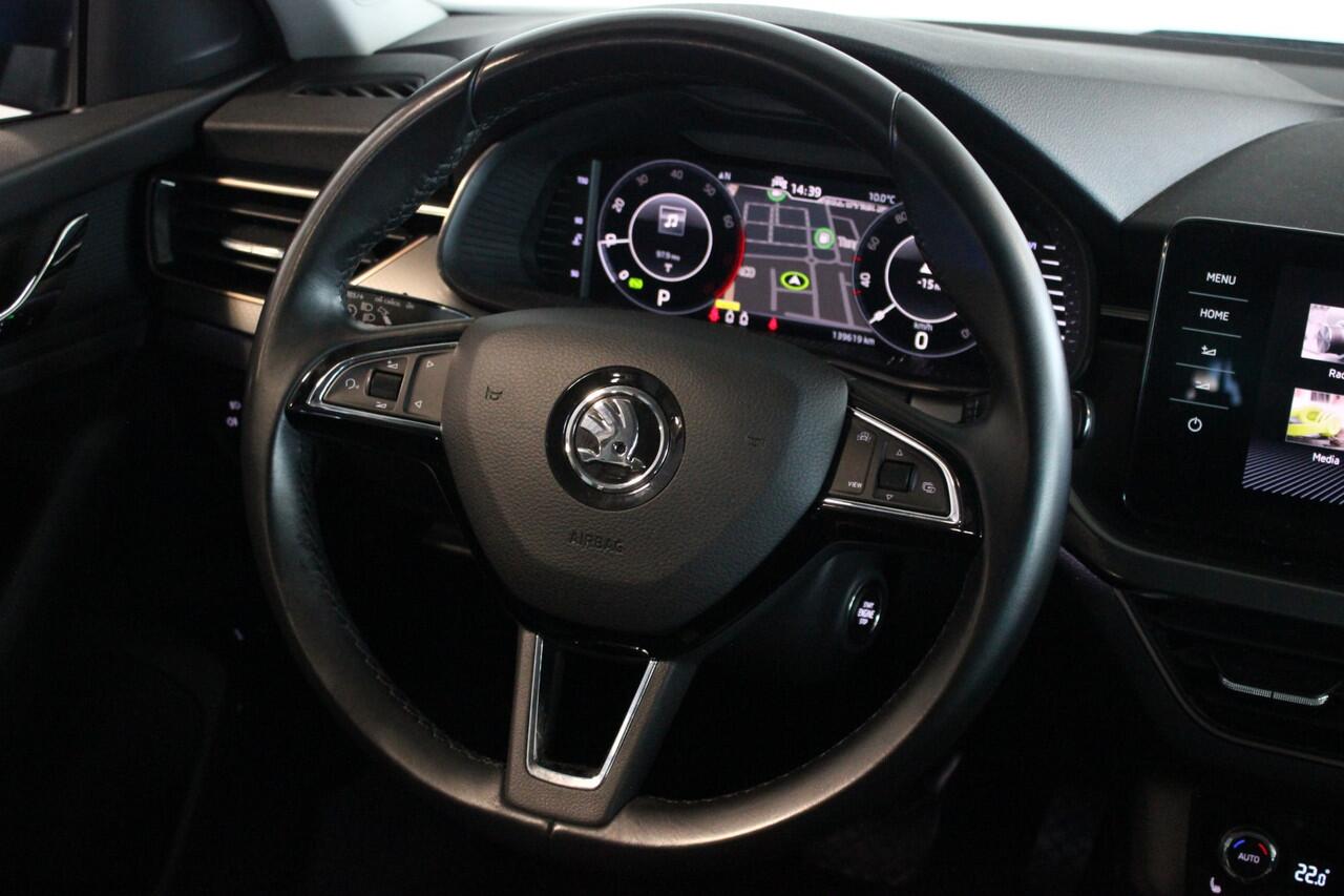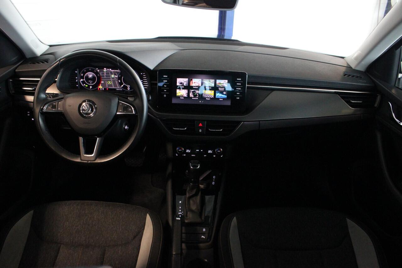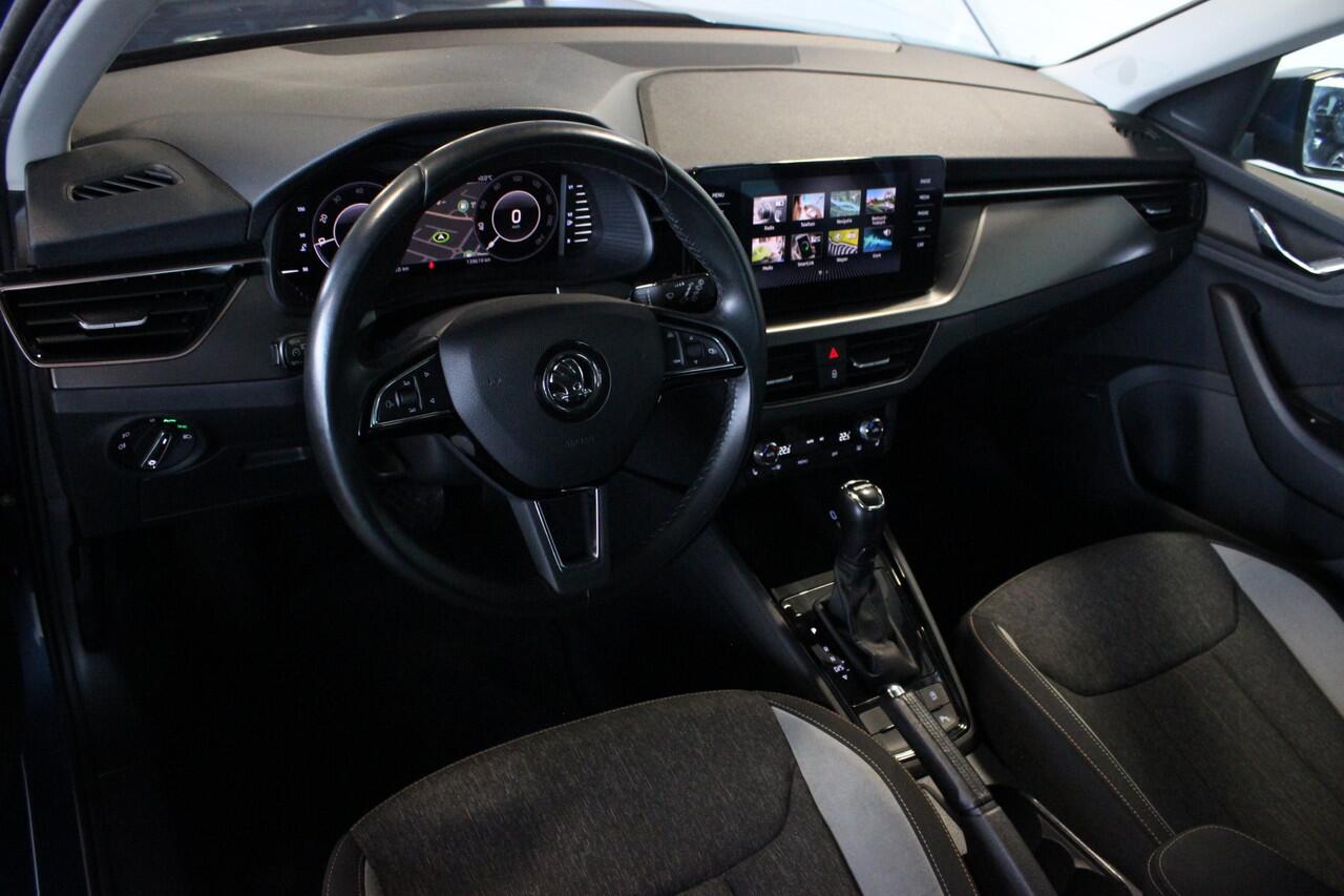 Zeer luxe uitgevoerde Skoda Kamiq met sterke maar zuinige benzinemotor en automatische transmissie. Deze compacte SUV met hoge instap is voorzien van o.a. stoelverwarming