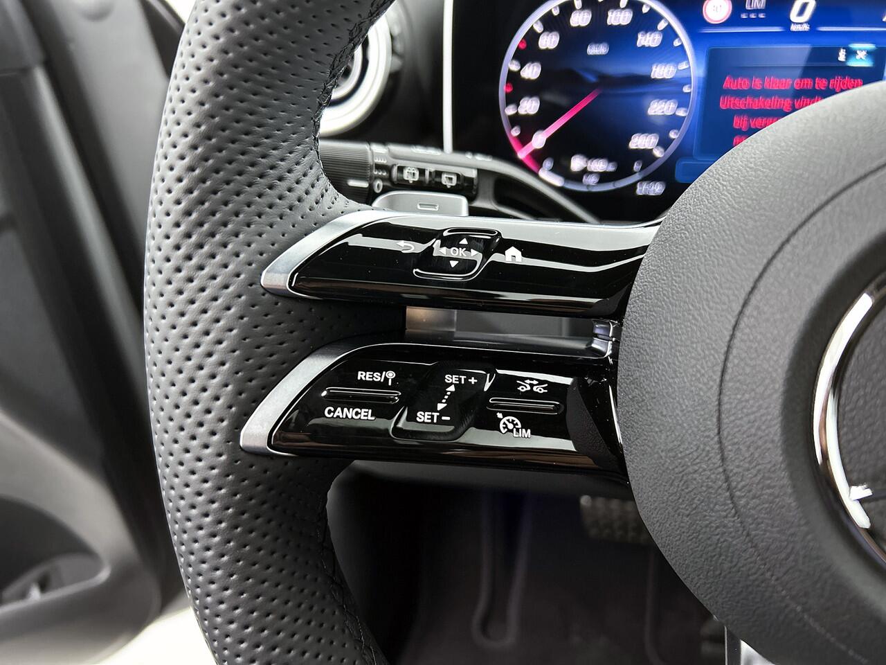 is lezen. Hij 'leest' voor jou de verkeersborden tijdens de rit en attendeert je erop door ze op het dashboard te projecteren. Deze Mercedes-Benz GLC-klasse is ook behulpzaam als het gaat om een rechte koers. Het Lane-keeping systeem signaleert en corrigeert als je onbedoeld de rijstrooklijnen dreigt te overschrijden. Als een fietser of andere weggebruiker zich net buiten je zichtveld naast de auto bevindt
