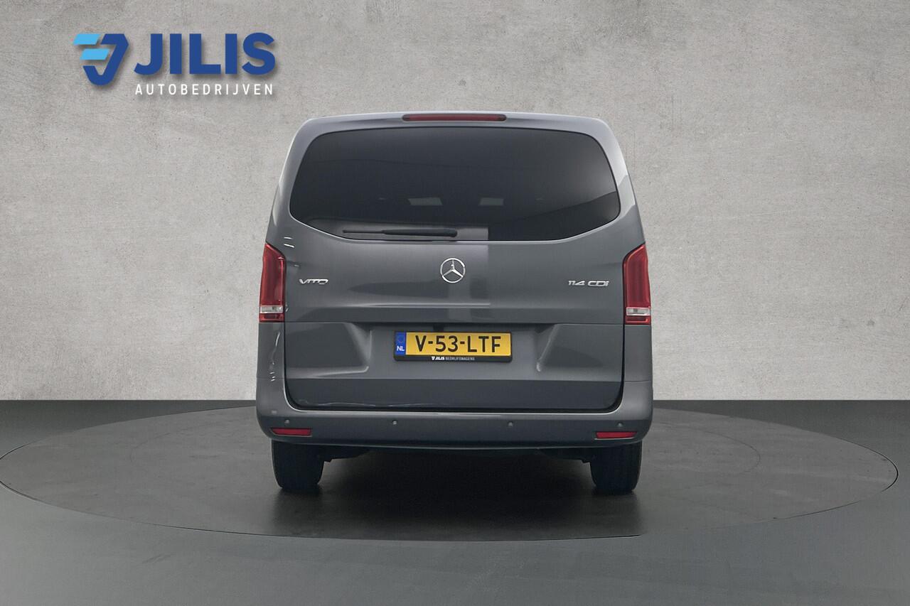 aldus de achteruitrijcamera. Iedere centimeter vrije ruimte komt haarscherp in beeld. Schadevrij inparkeren maar! Het navigatiesysteem en het audio-installatiesysteem (met DAB-ontvangst!) bedient u met knoppen op het stuur. Een paar spetters of een donderbui? De regensensor weet het als eerste en reageert precies goed! De cruise control vermindert het brandstofverbruik en vergroot het comfort. Geen capriolen meer als u met armen vol de auto moet openen. De keyless entry heeft u al herkend en ontgrendelt de Mercedes-Benz Vito automatisch. Extra opties op deze auto zijn: sportstuur met schakelpaddels