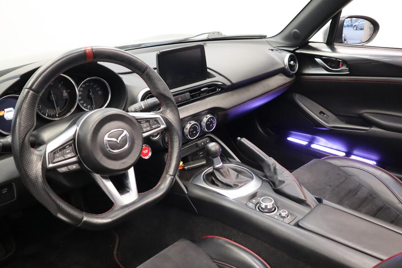een auto uit 2018 die 113044 kilometer heeft gelopen. In deze auto vindt u een benzinemotor en een handgeschakelde zesversnellingsbak. De auto is uitgerust met lederen bekleding. Een weldaad voor u en uw bijrijder: deze Mazda MX-5 heeft verwarmbare voorstoelen. Chauffeur en bijrijder zitten stabiel in de scherpe bochten door de sportstoelen. Natuurlijk behoren 17 inch lichtmetalen velgen