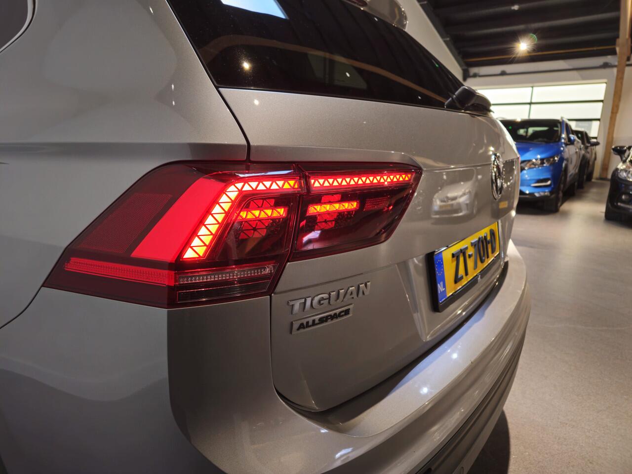 zoals aan deze Tiguan Allspace duidelijk te zien is. Het is een krachtige viercilinder benzinemotor die deze SUV aandrijft. De comfortstoelen van deze Volkswagen Tiguan Allspace staan bekend om zijn goede zithouding. Een praktische extra is de elektrisch bedienbare achterklep die opent en sluit met een druk op de knop. Bij de zeer complete uitrusting van deze auto behoren ook 18 inch lichtmetalen velgen