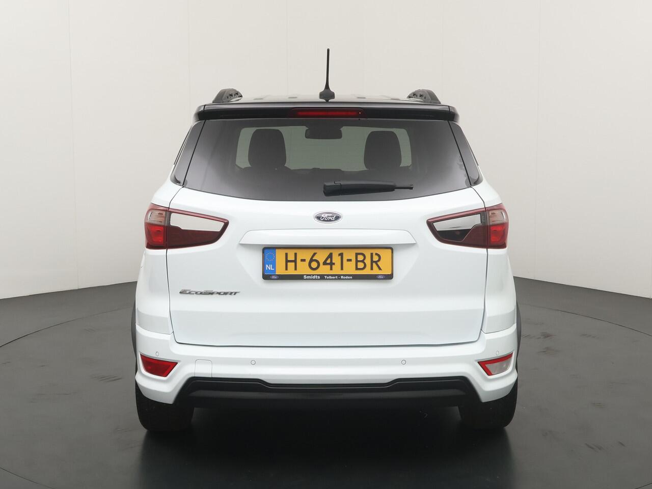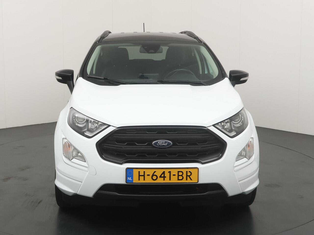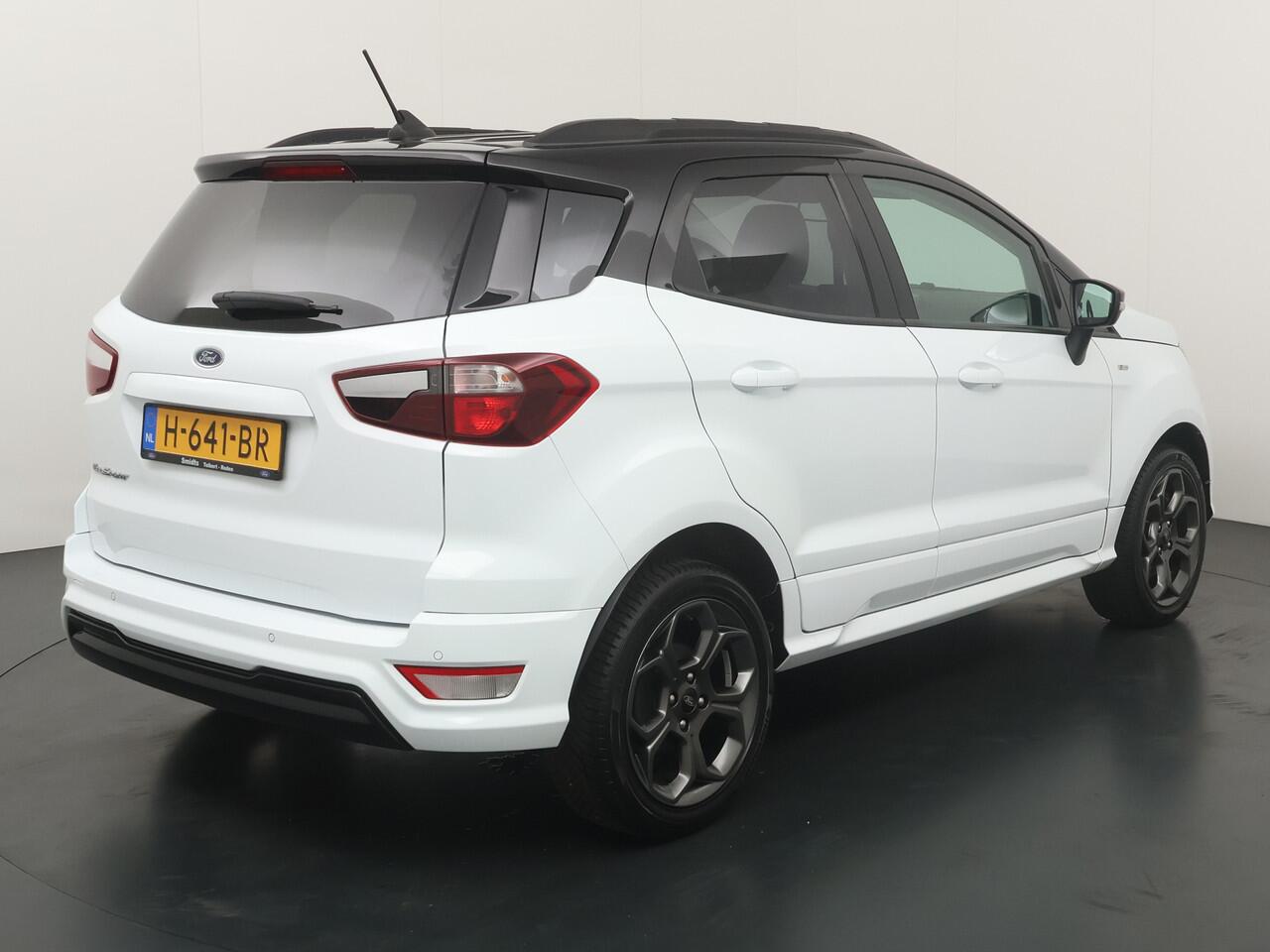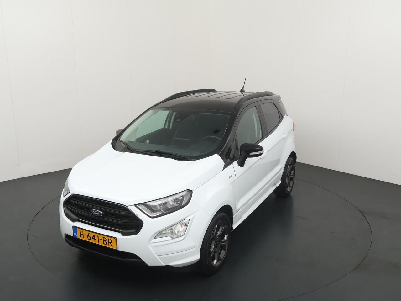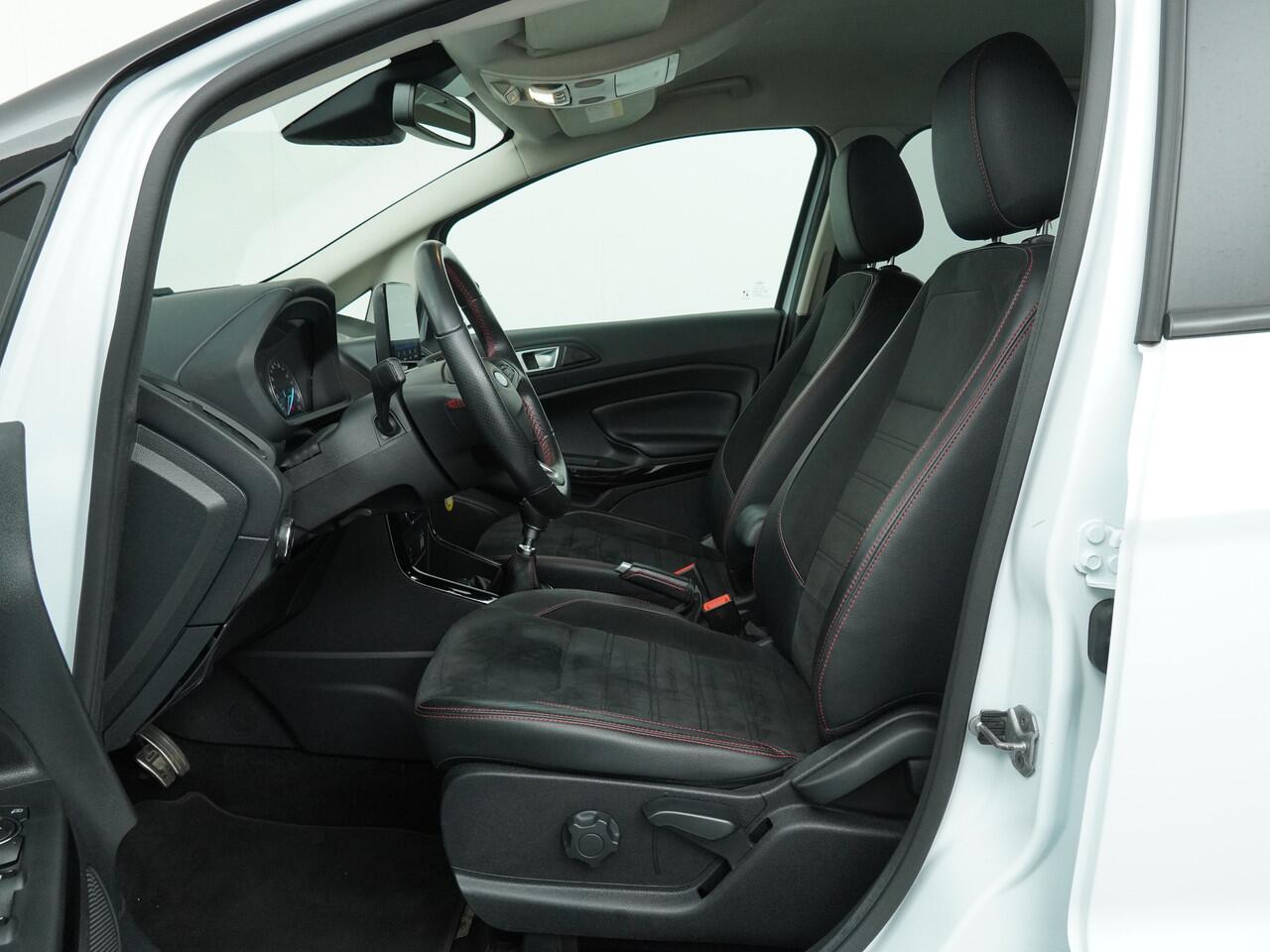 sportieve bumpers en het mooie contrast tussen het dak en de rest van de carrosserie laten zien dat dit geen standaard EcoSport is. Zitten doet u op fraaie sportstoelen met half leer en half alcantara. Het grote en duidelijk afleesbare touchsreen laat de navigatie