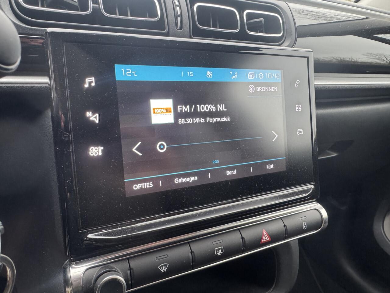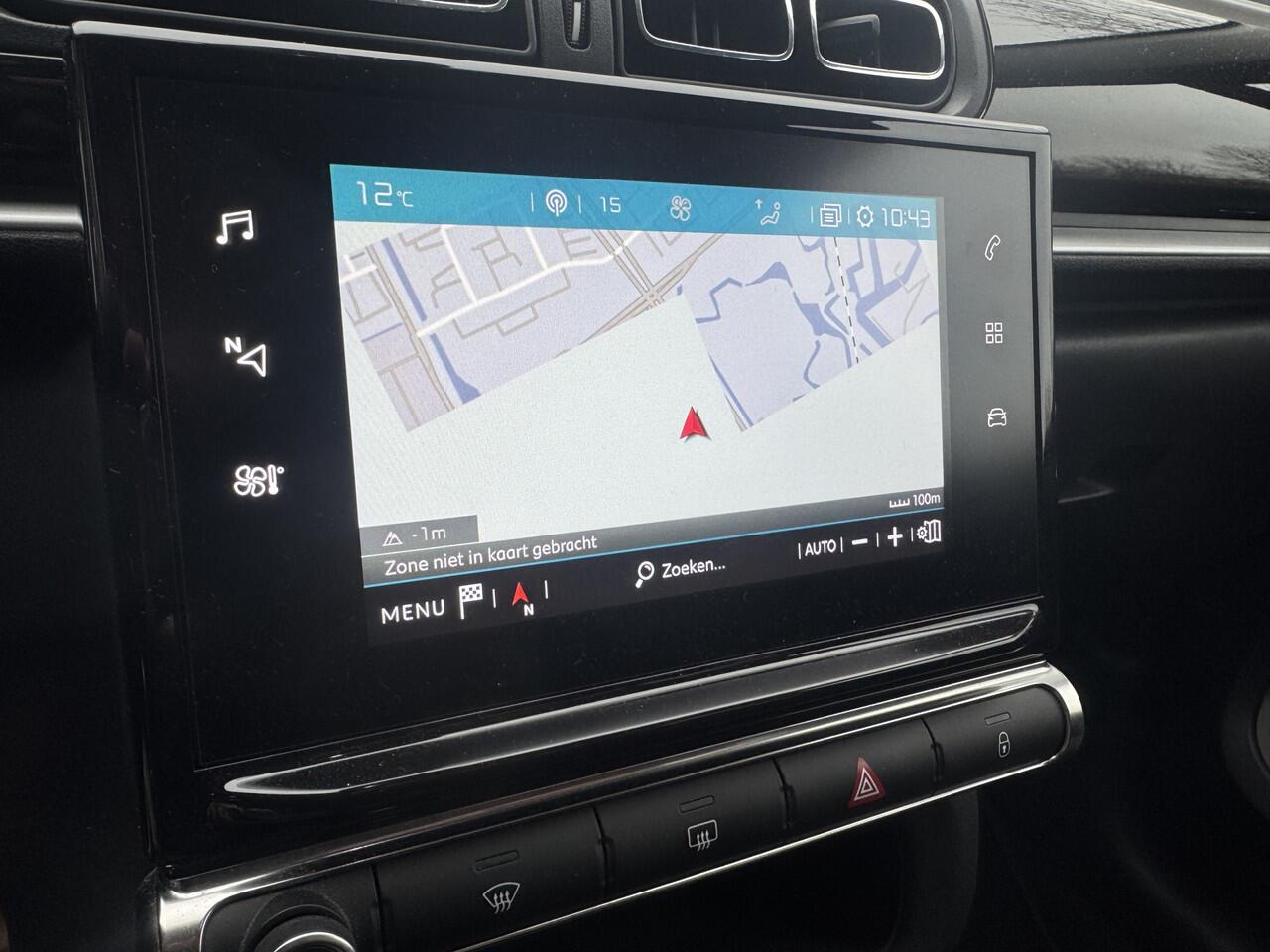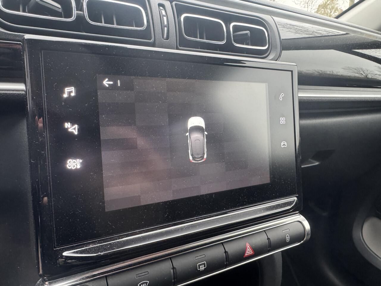 de bediening van het audiosysteem en ook het full map navigatiesysteem gaat met knoppen op het stuur en met spraak. Natuurlijk is de audio-installatie voorzien van DAB-ontvangst. De achteropkomend verkeer waarschuwing geeft een signaal als degene achter u te dicht op u zit. Ook handig en veilig bij het wisselen van rijbaan. Tot de standaard uitrusting van deze auto hoort ook automatische airconditioning. Parkeerplekken worden er niet ruimer op. Maar met de aanwezige parkeersensoren krijgt u deze Citroën C3 zonder problemen op z'n plaats. De uitrusting van deze Citroën is met regensensor