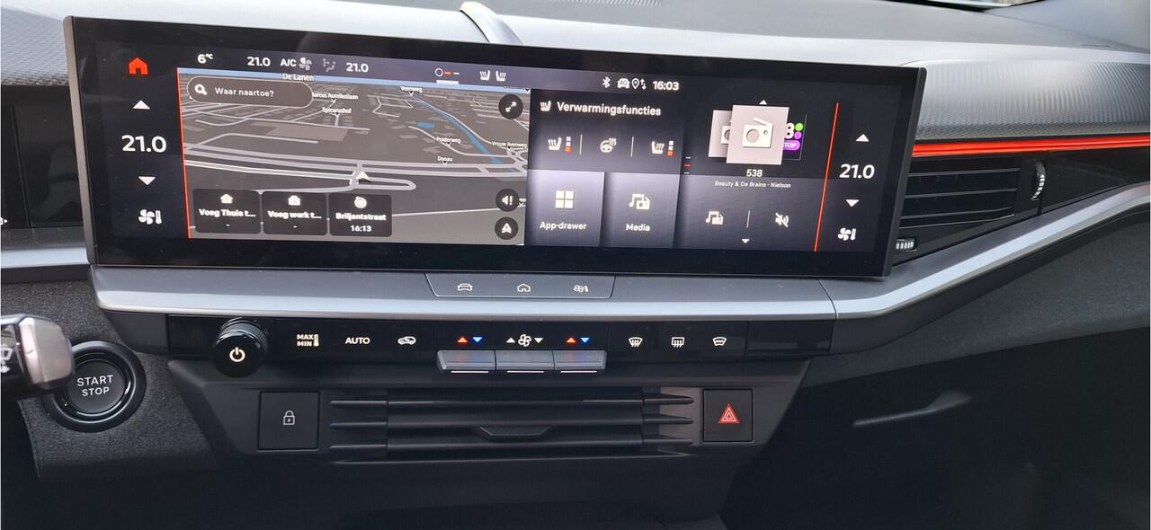 zodat je een volledig overzicht hebt van wat er rondom jouw auto gebeurt. Met adaptive cruise control houdt deze auto automatisch afstand tot jouw voorligger. Met je smartphone maak je overal contact met de auto. Remote services geven direct inzicht in uiteenlopende functies en zijn op afstand te activeren. Gemakkelijk en veilig is de spraakbediening voor het audiosysteem en het full map navigatiesysteem. Daarbij kun jij deze ook bedienen met de knoppen op het stuur. De audio-kwaliteit is geweldig