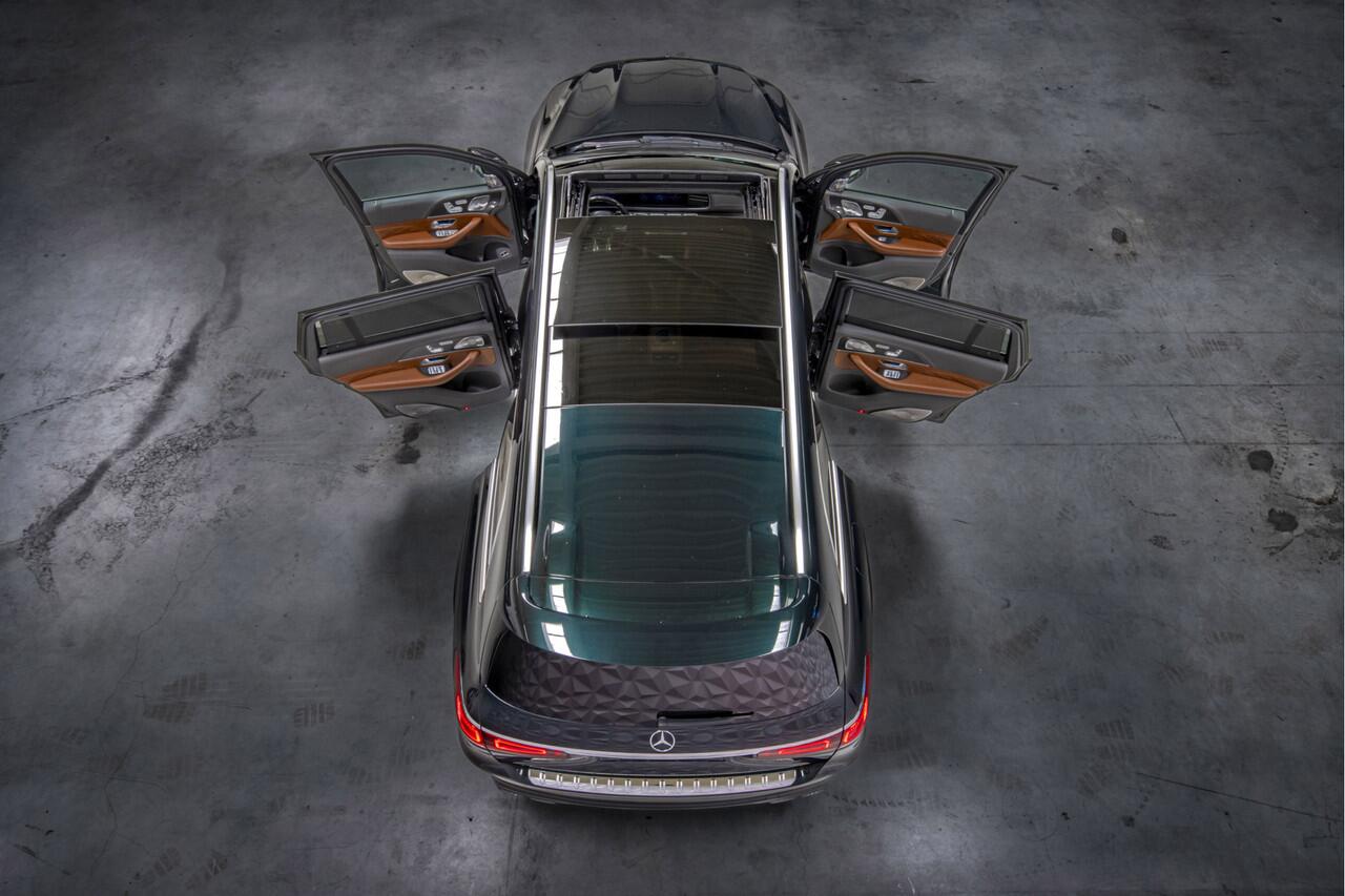 the standard black interior of the GLS 580 was replaced by a custom made tan leather interior with alcantara done by the company 'Cools Bekledingen' who are a high end upholsterer for supercars and super yachts. The seatsbelts are replaced in the color grey as well. The decorative sidepanels and doorpanels are used from original Maybach. The rear diffusor is swapped with the AMG 63 diffusor of the Mercedes Nightpack. The exterior is completed with a roofspoiler of the GLS. As last the steeringwheel is replaced with the performance steering-wheel of AMG with Carbon dinamica.