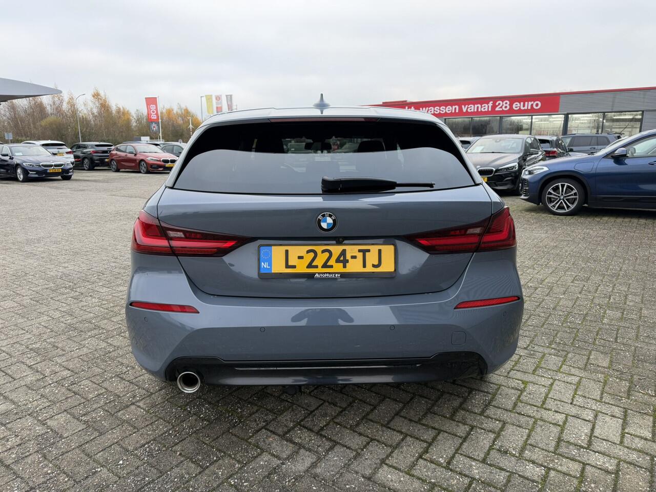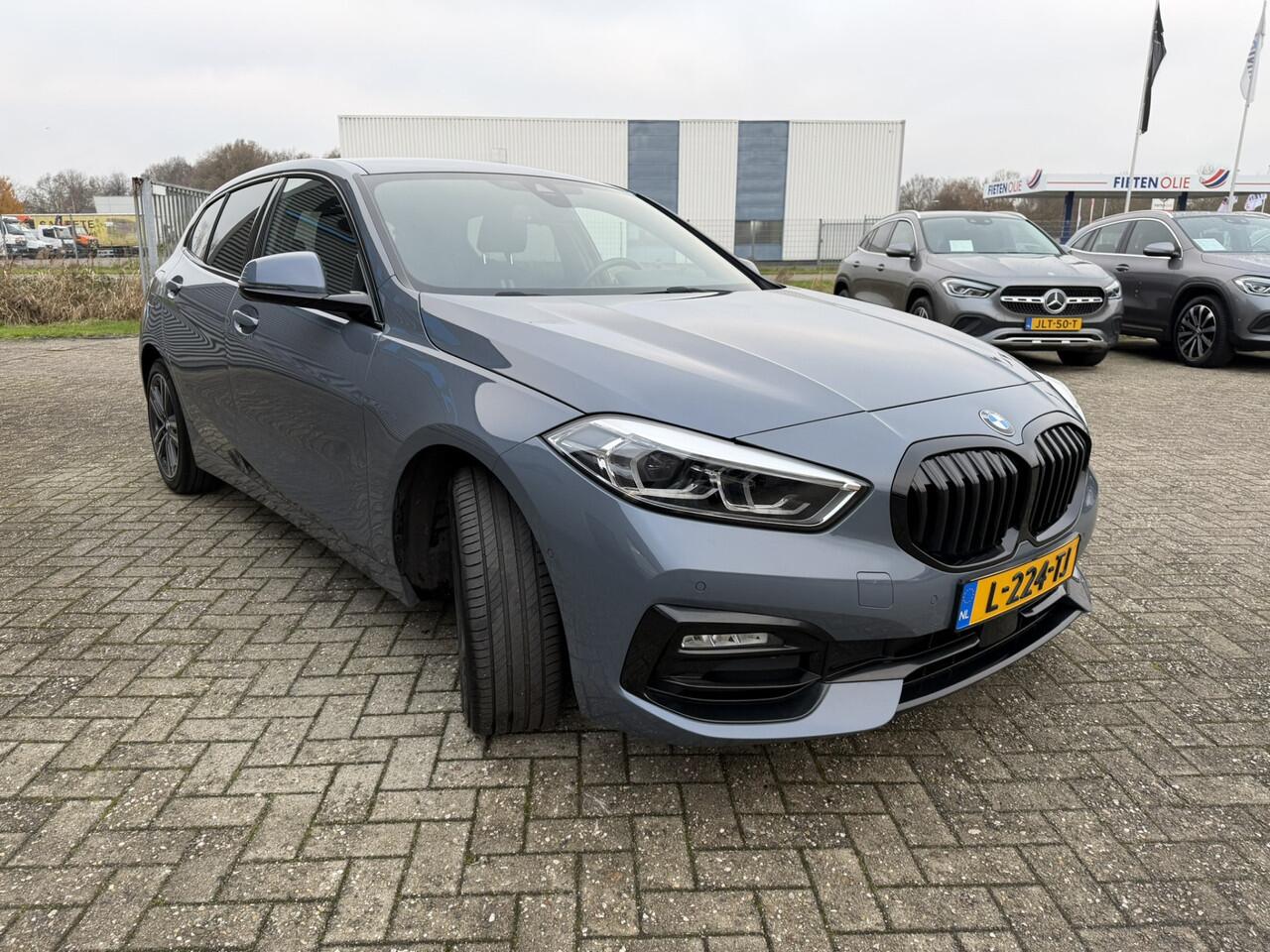 een zeer rijk uitgeruste en dealeronderhouden BMW 1-serie 118i Sport Line in de kleur Storm Bay Metallic.