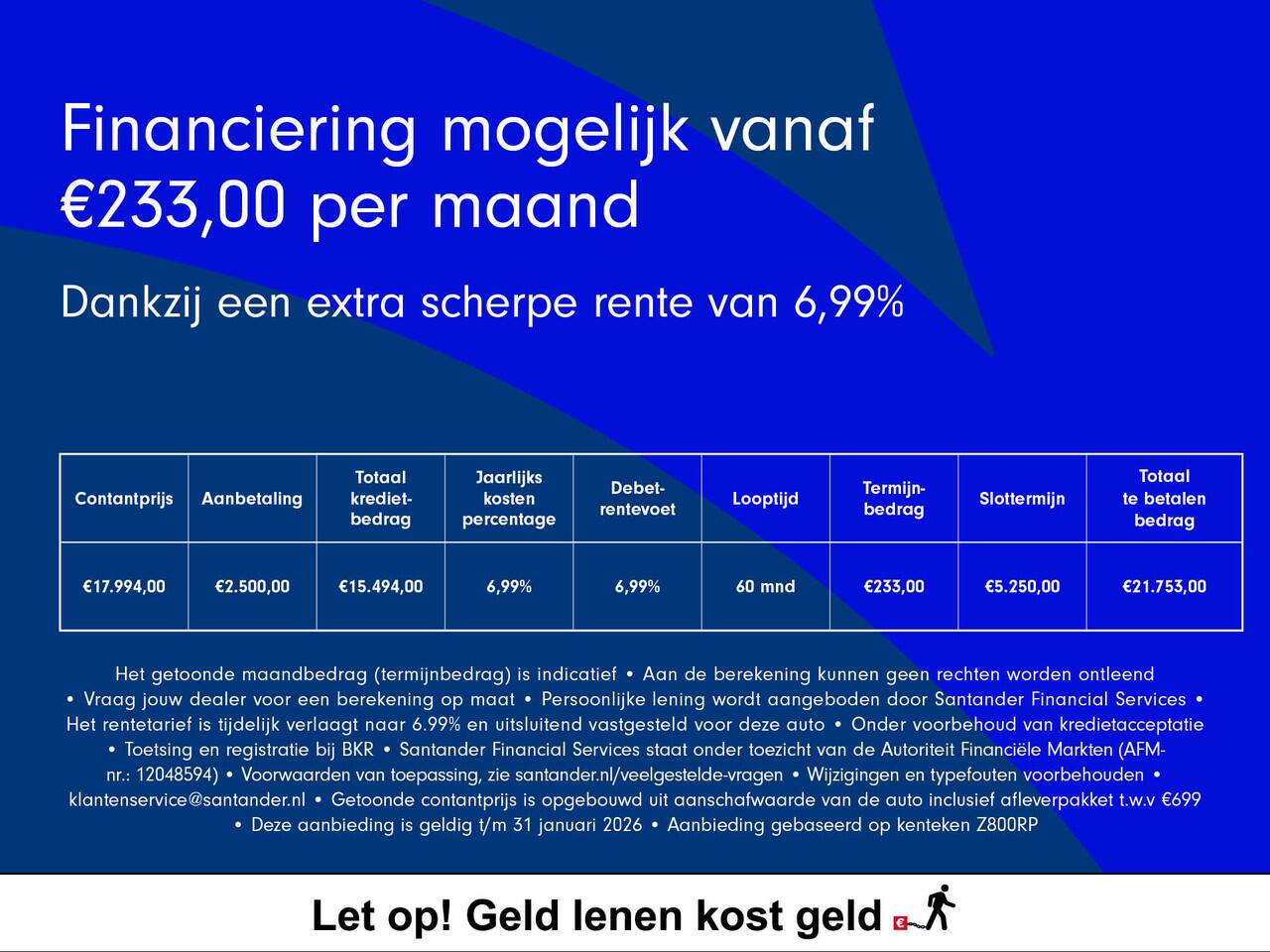 - (€ 699): o 12 maanden BOVAG garantie o 24/7 Pechhulp Europa dekking o