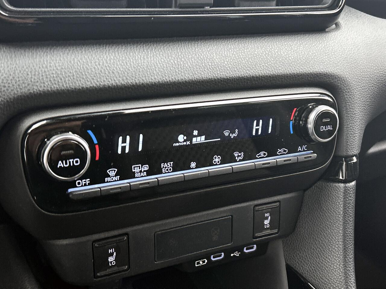 die deze auto zijn sportieve rijeigenschappen geeft. Hij heeft een benzinemotor en een automatische transmissie. Deze Toyota Yaris heeft verwarmbare voorstoelen