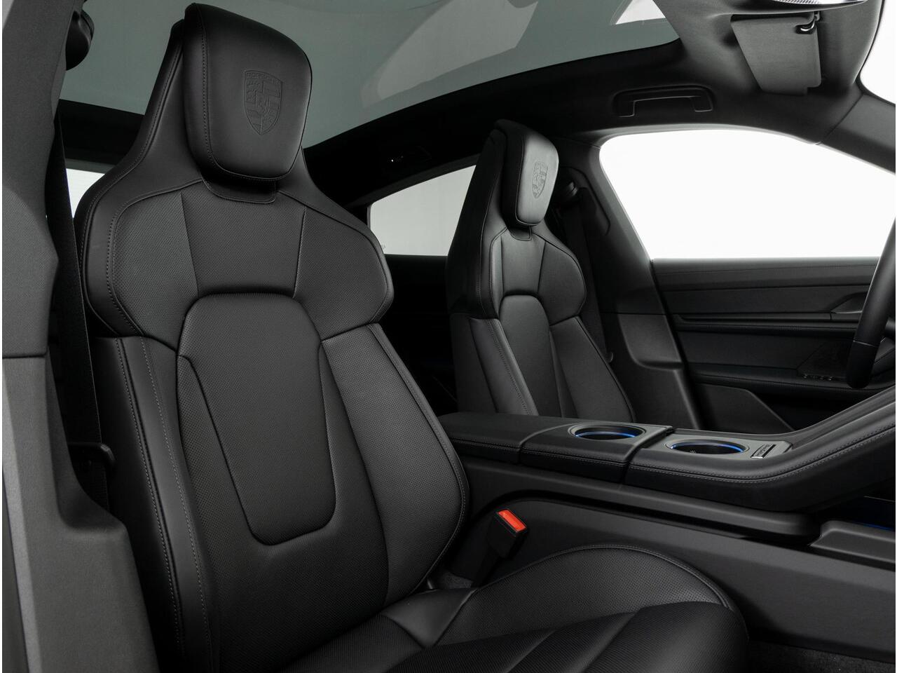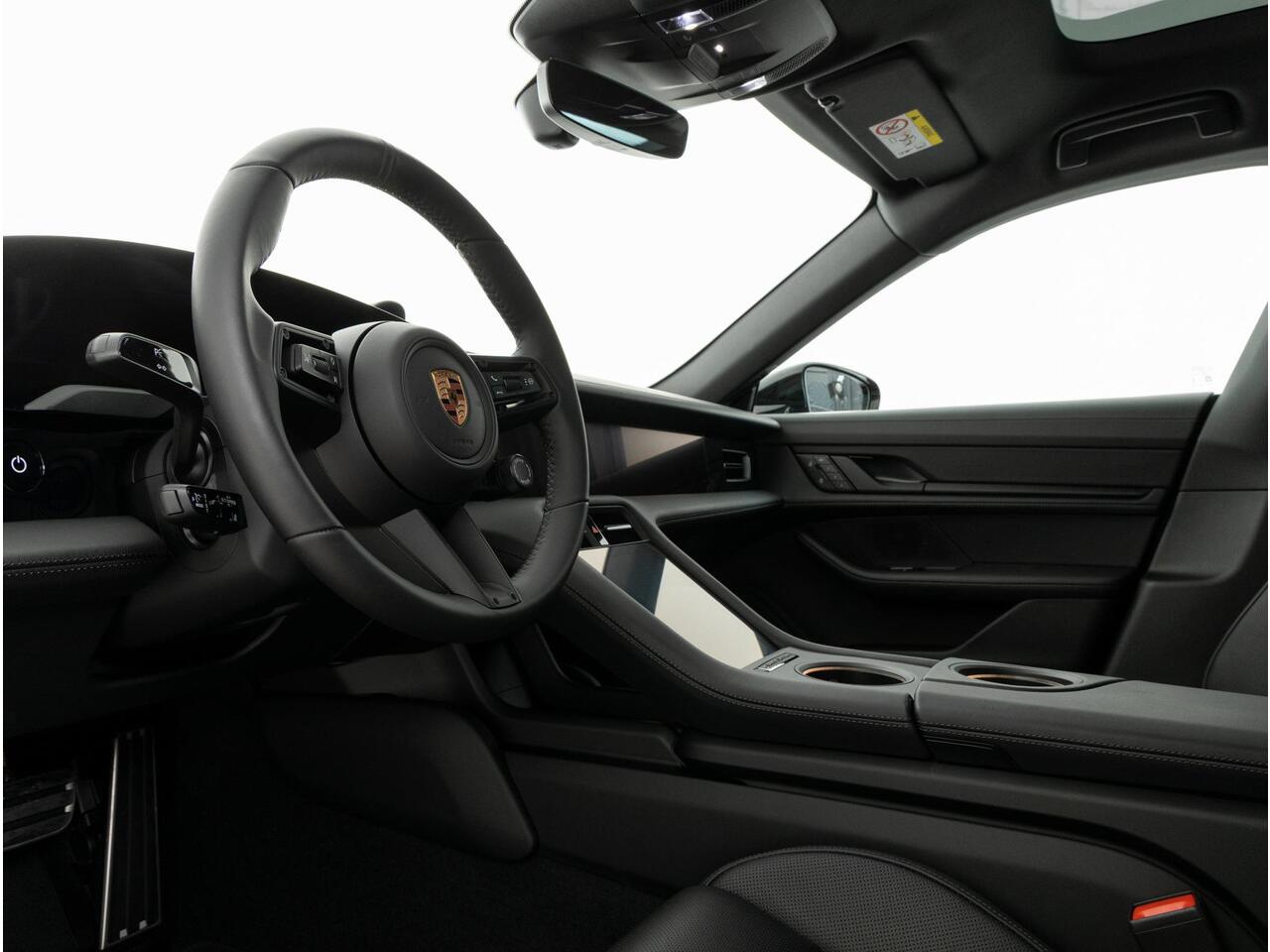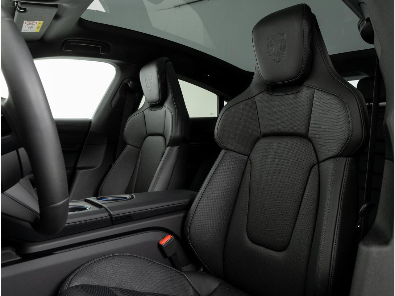 Deze Porsche Taycan Black Edition in de kleur Jet Black metallic is nog nieuw en ongeregistreerd. De Porsche onderscheidt zich onder andere door unieke opties