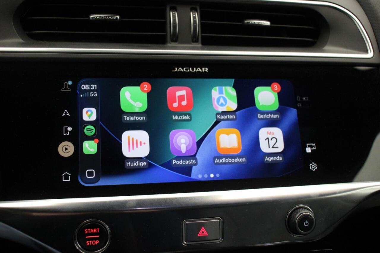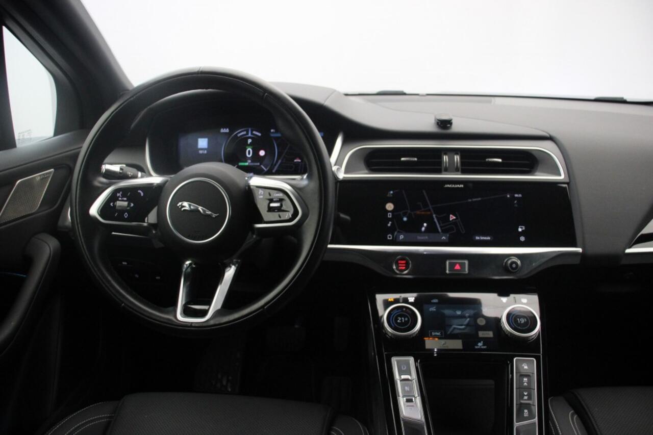 een panoramisch dak en lederen bekleding. Het interieur is voorzien van een lederen stuur en stoelverwarming voor extra comfort tijdens het rijden. Met Park control voor en achter parkeert u moeiteloos op elke locatie. Daarnaast heeft de auto een airconditioning die automatisch de gewenste temperatuur regelt. De JAGUAR I-PACE is ook voorzien van Radio DAB en Apple CarPlay