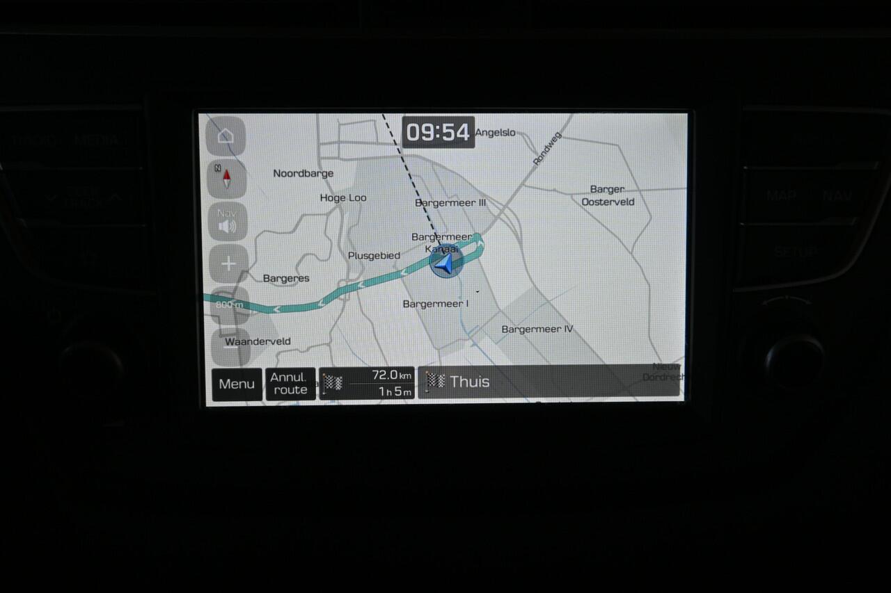 met de audiobediening op het stuur. Natuurlijk is een complete auto als deze ook voorzien van sensoren die de omgeving in de gaten houden. Deze Hyundai heeft niet alleen een automatisch inschakelbare verlichting aan boord