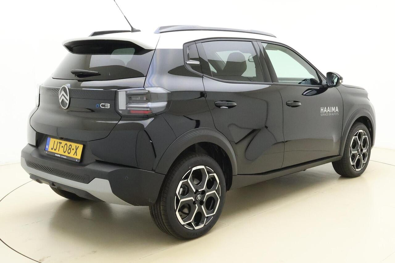 Het rijden met deze Citroen wordt nog meer ontspannen dankzij de innovatieve technieken die onderweg over uw veiligheid waken. U hoeft onderweg uw hoofd nooit te draaien of uw blik te verplaatsen om dashboard-info af te lezen. De head-up display projecteert alles op de voorruit. U kunt rijden als een jachtpiloot. De camera van de verkeersborddetectie herkent verschillende soorten verkeersborden en toont deze op het dashboard. Deze Citroen Ë-C3 is ook behulpzaam als het gaat om een rechte koers. Het Lane-keeping systeem signaleert en corrigeert als u onbedoeld de rijstrooklijnen dreigt te overschrijden. Dankzij veiligheidsvoorzieningen als hill hold functie